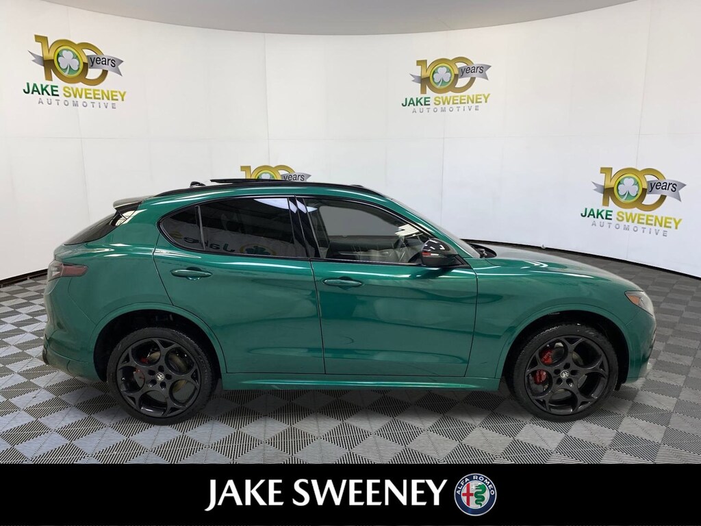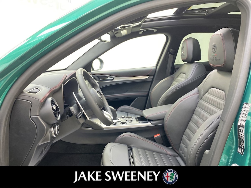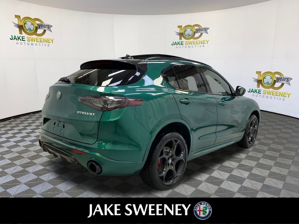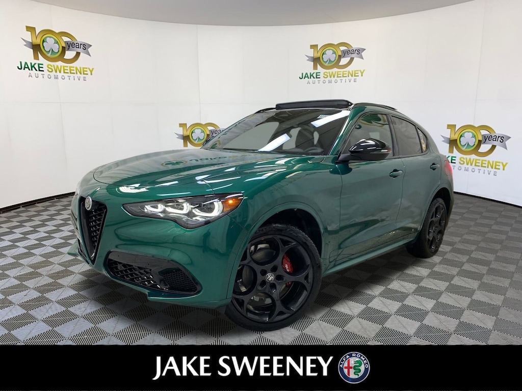 Our 2025 Alfa Romeo Stelvio Tributo Italiano Q4 epitomizes the brand's iconic style and sportiness in Verde Fangio Metallic. Powered by a Turbocharged 2.0 Liter 4 Cylinder providing 280hp to a paddle-shifted 8 Speed Automatic transmission for aggressive acceleration. An active suspension, Brembo front brakes, and a carbon-fiber driveshaft allow our All Wheel Drive SUV to handle with athletic eagerness, and it scores nearly 28mpg on the highway. A limited edition, our Stelvio shows exclusive appeal with its LED lighting, panoramic sunroof, distinctive grille, 21-inch wheels, Italian flag mirror-cap accents, gloss-black details, and a hands-free liftgate.