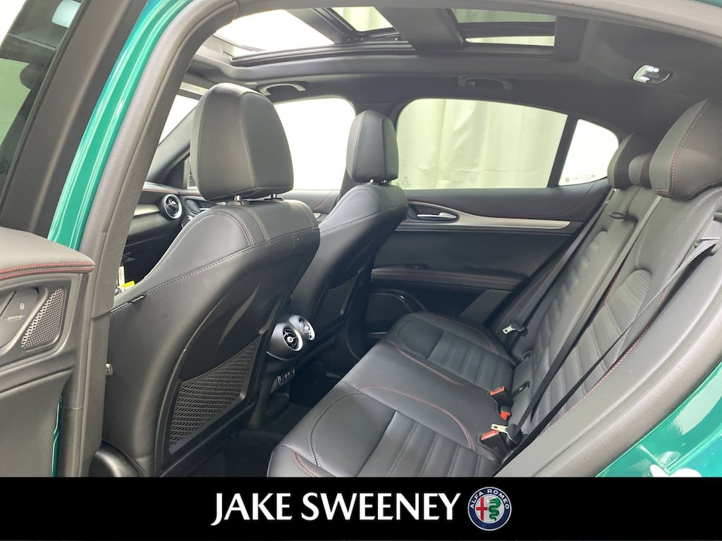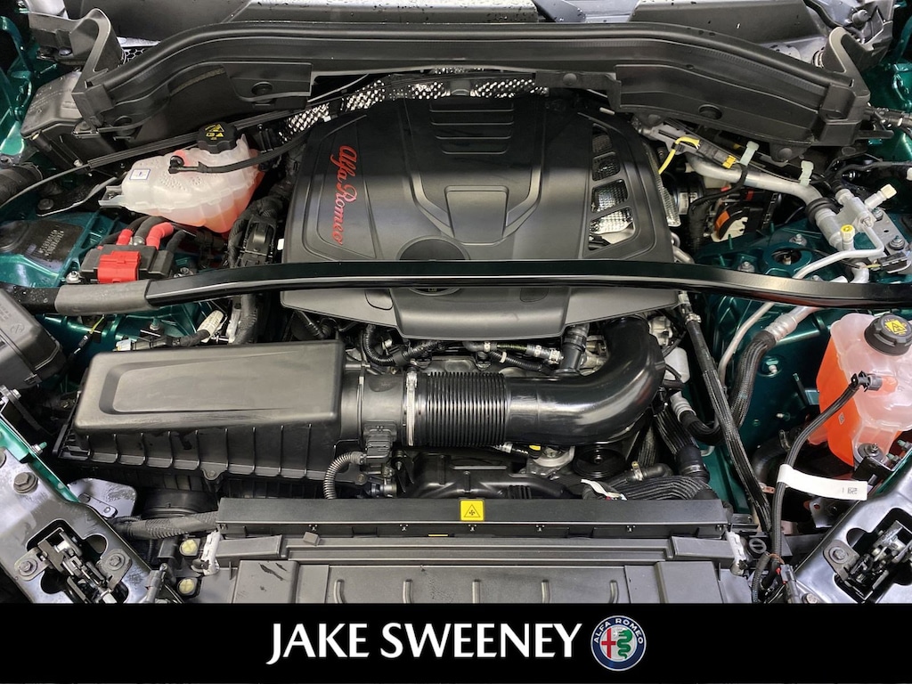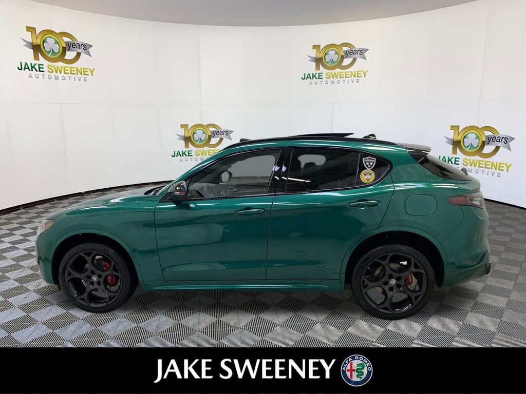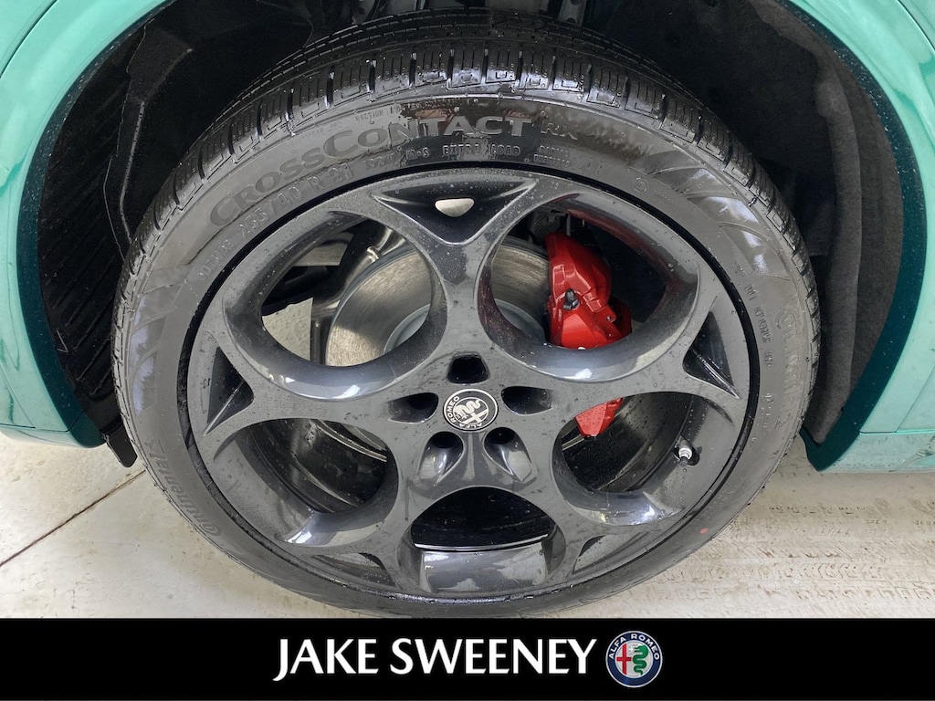 Our 2025 Alfa Romeo Stelvio Tributo Italiano Q4 epitomizes the brand's iconic style and sportiness in Verde Fangio Metallic. Powered by a Turbocharged 2.0 Liter 4 Cylinder providing 280hp to a paddle-shifted 8 Speed Automatic transmission for aggressive acceleration. An active suspension, Brembo front brakes, and a carbon-fiber driveshaft allow our All Wheel Drive SUV to handle with athletic eagerness, and it scores nearly 28mpg on the highway. A limited edition, our Stelvio shows exclusive appeal with its LED lighting, panoramic sunroof, distinctive grille, 21-inch wheels, Italian flag mirror-cap accents, gloss-black details, and a hands-free liftgate.