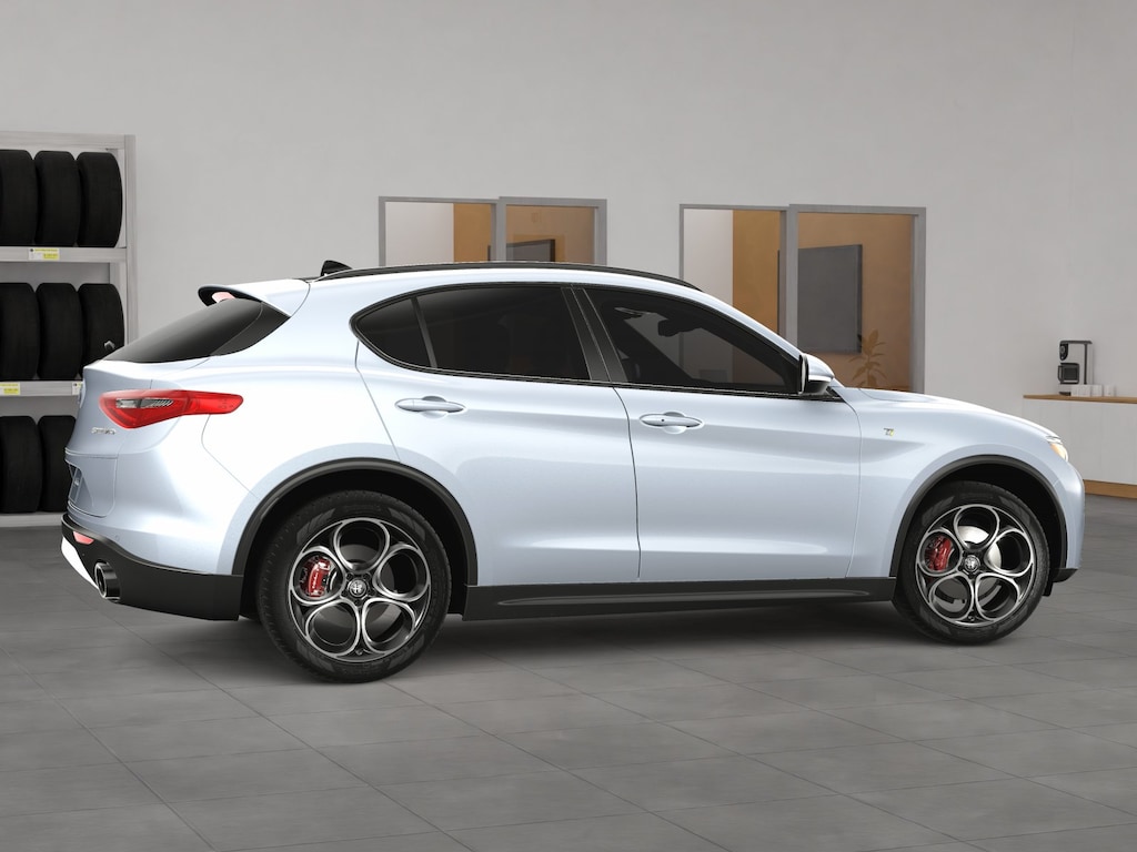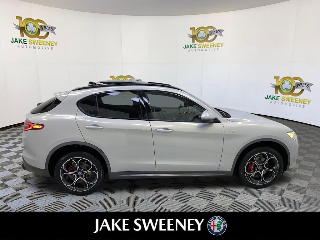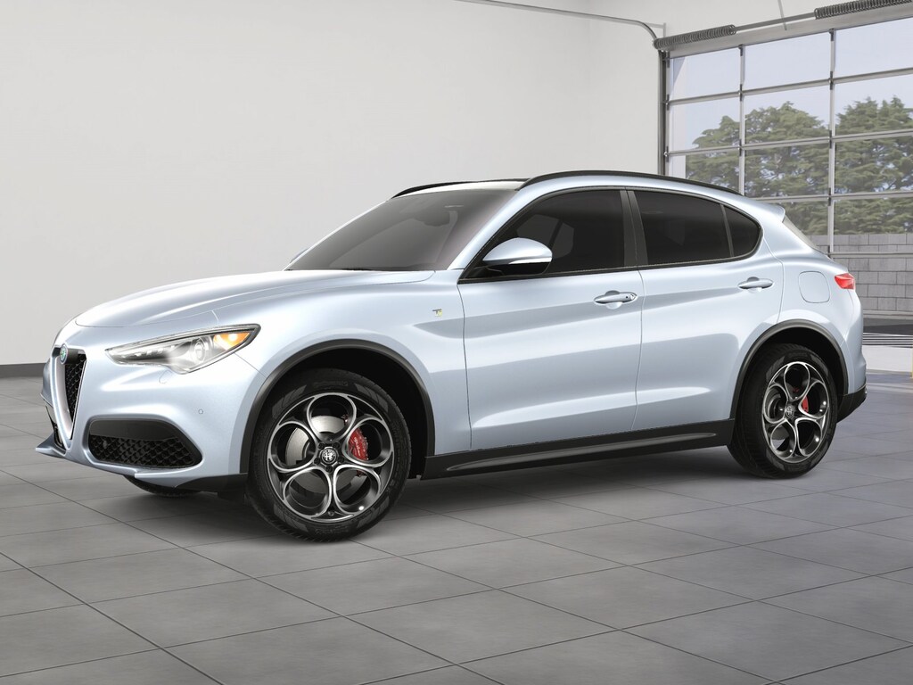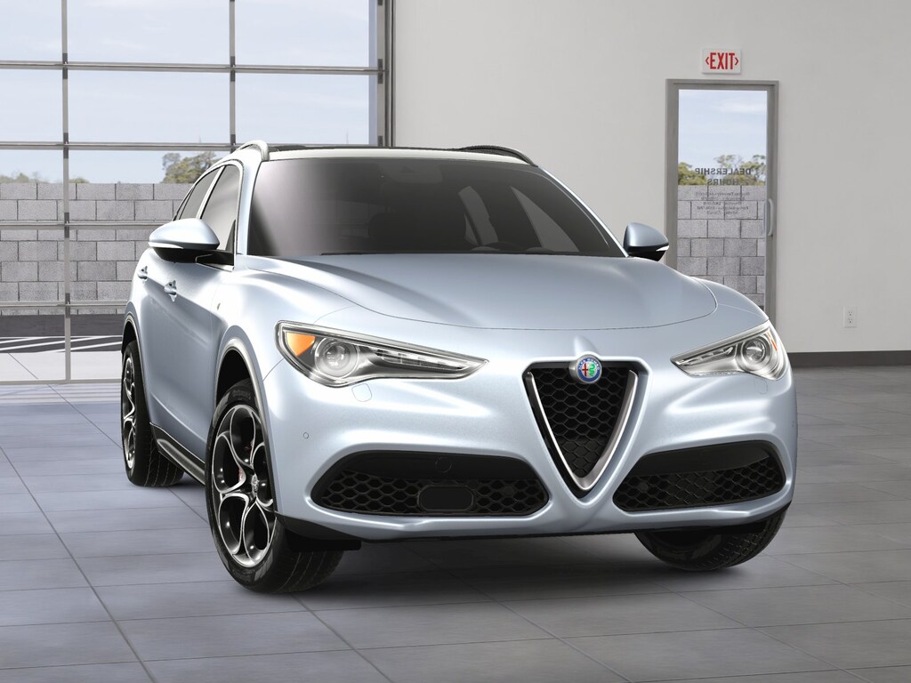 Fast and fierce, our 2023 Alfa Romeo Stelvio Ti AWD encourages owners to get more out of their driving in Moonlight Gray Metallic! Powered by a TurboCharged 2.0 Liter 4 Cylinder delivering 280hp matched a paddle-shifted 8 Speed Automatic transmission so you can move with bold authority. This All Wheel Drive SUV also has what it takes to handle your enthusiastic maneuvers with ease, and it scores nearly 28mpg on the highway. Out Stelvio's stunning good looks get a boost from adaptive bi-xenon headlamps, a hands-free liftgate, a dual-pane sunroof, an iconic V-Scudetto grille, dual exhaust outlets, heated power-folding mirrors, and 19-inch alloy wheels.