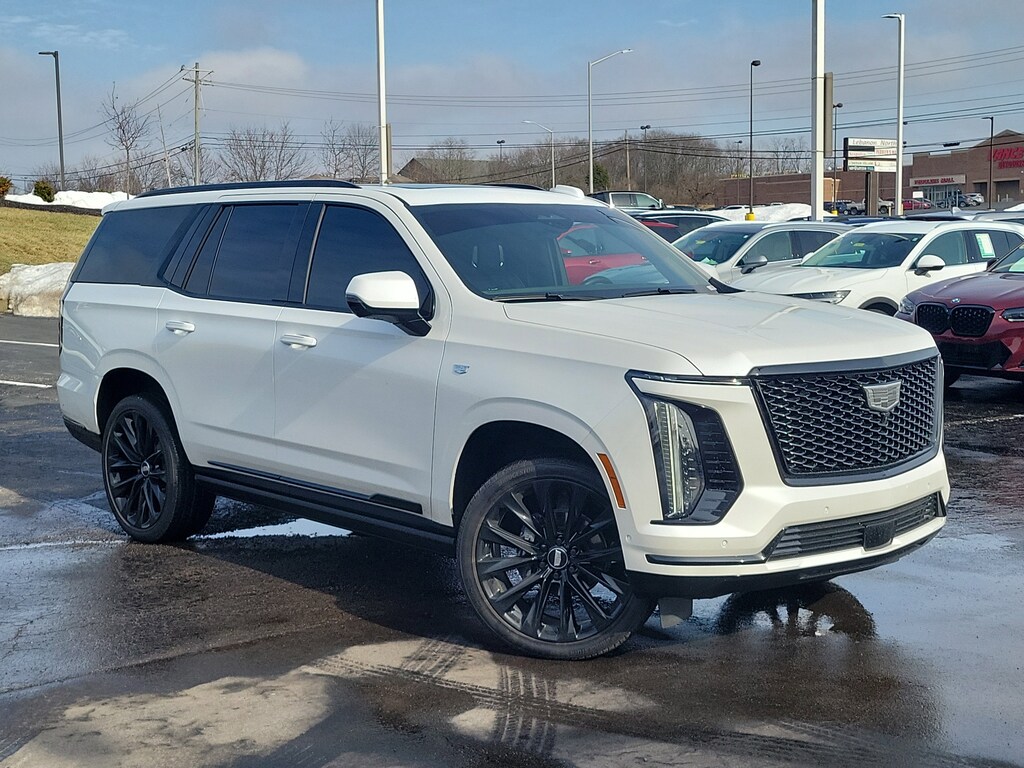 Have you ever wondered where to buy a Certified used car? Look no further! Jake Sweeney is here to Help. If you are in need of a new or used vehicle, we are offering you the ability to shop online and have your vehicle delivered to your home. Come visit us in store as well for a fun, fast, and easy car buying experience! Crystal White Tricoat 2025 Cadillac Escalade Sport Platinum 4WD 10-Speed Automatic 6.2L V8 4WD, Black Leather, 2-Presets Memory For Driver Seat Adjuster, 2-Speed Active Transfer Case, 24" Black Alloy Wheels, 3rd row seats: split-bench, 4-Way Power Driver Lumbar Seat Adjuster, 4-Way Power Front Passenger Lumbar Seat Adjuster, 8-Way Power Driver Seat Adjuster, 8-Way Power Front Passenger Seat Adjuster, Adaptive suspension, Air Ride Adaptive Suspension, AKG Studio Reference 36-Speaker Audio System, AM/FM radio: SiriusXM with 360L, Apple CarPlay/Android Auto, Auto High-beam Headlights, Auto tilt-away steering wheel, Auto-dimming Rear-View mirror, Black Illuminated Cadillac Emblem, Blind Zone Steering Assist with Trailering, Brake assist, Door Lock and Latch Shields, Electronic Limited-Slip Differential, Electronic Stability Control, Exterior Parking Camera Rear, Floor Console with Covered Storage, Front Auxiliary 12-Volt Power Outlet, Front Bucket Seats, Front Center Armrest w/Storage, Front Passenger Seat Power Bolster, Front reading lights, Full Semi-Aniline Leather Seats with Mini-Chevron, Garage door transmitter, Glass Breakage Sensor, Gloss Black Escalade Nameplate, Headphones, Heads-Up Display, Heated and Ventilated Driver and Front Passenger Seats, Heated door mirrors, Heated Driver and Front Passenger Seats, Heated front seats, Heated rear seats, Heated steering wheel, Hitch Guidance with Hitch View, Illuminated entry, Illuminating Front and Rear Sill Plates, Integrated Trailer Brake Controller, Lane Departure Warning System, Leather steering wheel, Magnetic Ride Control Suspension, Memory seat, Next Generation Active Noise Cancellation, Night Vision, Night vision lights, Onyx Package, Passenger door bin, Platinum Interior Trim, Power driver seat, Power Liftgate, Power Lumbar Massage Driver Seat, Power Lumbar Massage Front Passenger Seat, Power Open/Close Doors, Power Panoramic Tilt-Sliding Sunroof, Power passenger seat, Power-Retractable Assist Steps, Preferred Equipment Group 1SH, Radio data system, Radio: Infotainment Experience, Rear audio controls, Rear Seat Entertainment System, Reconfigurable Full-Color Head-Up Display, SiriusXM with 360L Trial Subscription, Smart Trailer Integration Indicator, Soft Closing Front and Rear Doors, Steering wheel mounted audio controls, Telescoping steering wheel, Theft-Deterrent Alarm System, Touring Package, Traction control, Trailering App, Trailering Assist Guidelines, Turn signal indicator mirrors, Variably intermittent wipers, Vehicle Inclination Sensor, Vehicle Interior Movement Sensor, Ventilated front seats, Voltmeter, Wheel Locks, Wheels: 22" 18-Spoke Alloy, Wheels: 24" Transit, Wireless Apple CarPlay/Wireless Android Auto.
