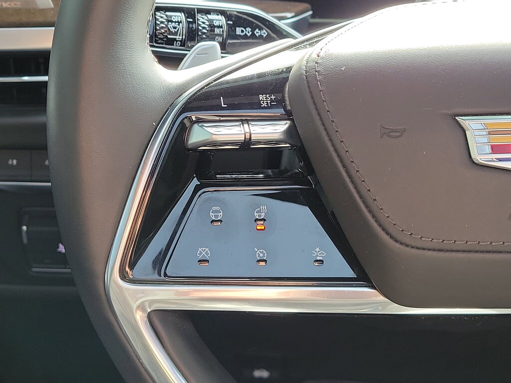 - Black illuminated Cadillac emblem: