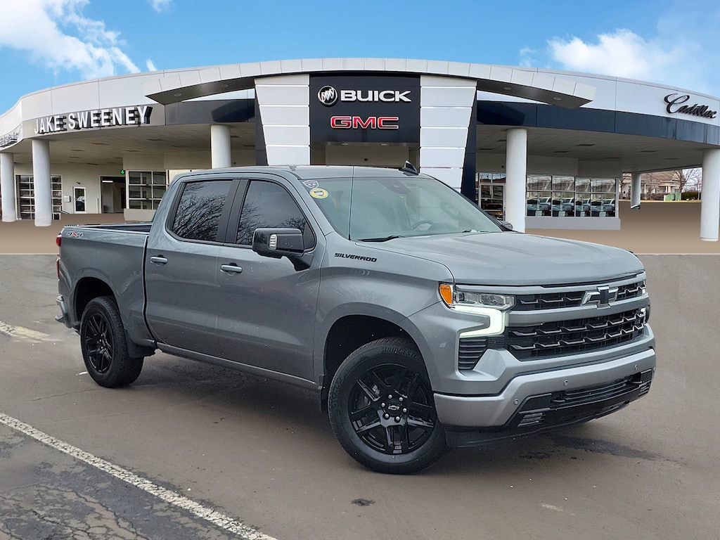 Have you ever wondered where to buy a Certified used car? Look no further! Jake Sweeney is here to Help. If you are in need of a new or used vehicle, we are offering you the ability to shop online and have your vehicle delivered to your home. Come visit us in store as well for a fun, fast, and easy car buying experience! Sterling Gray Metallic 2024 Chevrolet Silverado 1500 RST 4WD 10-Speed Automatic EcoTec3 5.3L V8 10-Speed Automatic, 4WD, Jet Black Cloth, 10-Way Power Driver Seat w/Lumbar, 12.3" Multicolor Reconfigurable Digital Display, 120-Volt Bed Mounted Power Outlet, 120-Volt Interior Power Outlet, 2 USB Data Ports, 6-Speaker Audio System, All-Star Edition, Auto-Locking Rear Differential, Automatic Emergency Braking, Black Name Plates (LPO), Black Tailgate CHEVROLET Lettering (LPO), Bluetooth® For Phone, Brake assist, Chevrolet Connected Access Capable, Color-Keyed Carpeting Floor Covering, Convenience Package, Convenience Package II, Dark Essentials Package (LPO), Deep-Tinted Glass, Dual Rear USB Ports (Charge Only), Dual-Zone Automatic Climate Control, Electric Rear-Window Defogger, Electrical Steering Column Lock, Electronic Cruise Control, Electronic Stability Control, Electronic Transmission Range Selector Shifter, EZ Lift Power Lock & Release Tailgate, Floor Mounted Center Console, Following Distance Indicator, Forward Collision Alert, Front Bucket Seats, Front Frame-Mounted Black Recovery Hooks, Front LED Fog Lamps, Front Pedestrian Braking, Front reading lights, Front Rubberized Vinyl Floor Mats, HD Rear Vision Camera, HD Surround Vision, Heated Driver & Front Outboard Passenger Seats, Heated Power-Adjustable Outside Mirrors, Heated Steering Wheel, High Capacity Suspension Package, High Gloss Black Mirror Caps, Hitch Guidance, Hitch Guidance w/Hitch View, In-Vehicle Trailering System App, Inside Rear-View Mirror w/Tilt, Integrated Trailer Brake Controller, Keyless Open & Start, LED Cargo Area Lighting, OnStar & Chevrolet Connected Services Capable, Perimeter Lighting, Power Front Windows w/Driver Express Up/Down, Power Front Windows w/Passenger Express Down, Power Rear Windows w/Express Down, Power Sliding Rear Window w/Rear Defogger, Preferred Equipment Group 1SP, Premium audio system: Chevrolet Infotainment 3 Premium, Premium Bose 7-Speaker Sound System, Radio data system, Radio: Chevrolet Infotainment 3 Premium System, Rear 60/40 Folding Bench Seat (Folds Up), Rear Cross Traffic Braking, Rear Pedestrian Alert, Rear Rubberized-Vinyl Floor Mats, Remote Vehicle Starter System, Safety Package, SiriusXM w/360L, Standard Suspension Package, Standard Tailgate, Steering Wheel Audio Controls, Theft Deterrent System (Unauthorized Entry), Trailer Camera Provisions, Trailer Side Blind Zone Alert, Trailering Package, Ultrasonic Front & Rear Park Assist, Universal Home Remote, Wheels: 20" x 9" High Gloss Black Painted Alum, Wi-Fi Hot Spot Capable, Wireless Charging, Wrapped Steering Wheel.