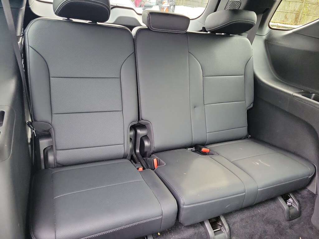 Roomy and relaxing, our LT cabin is equipped for adventure with heated premium cloth front seats with eight-way power for the driver, folding second/third rows, a heated-wrapped steering wheel, tri-zone automatic climate control, keyless access/ignition, and remote start. The interior shows its intelligence with a 17-inch touchscreen, an 11-inch driver display, WiFi compatibility, Google Built-in with navigation, Bluetooth®, and a six-speaker sound system. There's ample room for cargo, too!