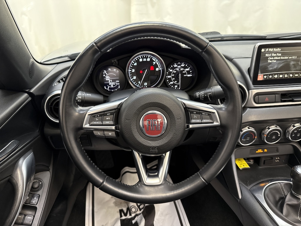 Delivering seductive Italian styling matched with performance derived from a long and storied race history, our One Owner, No Accidents Reported 2017 Fiat 124 Spider Classica Convertible is proudly presented in Grigio Argento! Enjoy the thrill of each and every top-down moment with the 1.4 Liter TurboCharged 4 Cylinder that offers 160hp while paired with a short-throw 6 Speed Manual transmission that optimizes clutch operation for responsive and precise handling. This Rear Wheel Drive team along with the sophisticated suspension, electric power assist steering system, nearly 50/50 weight distribution and low center of gravity all help deliver nearly 35mpg on the highway and a drive that will have you tempted to go one more time around the block! Take a walk around our frisky 124 Spider Classica and admire the elegant lines that have been sculpted with precision. You can't help but notice the beautiful wheels and Manual soft top.