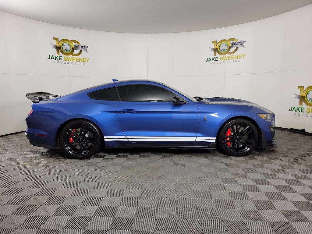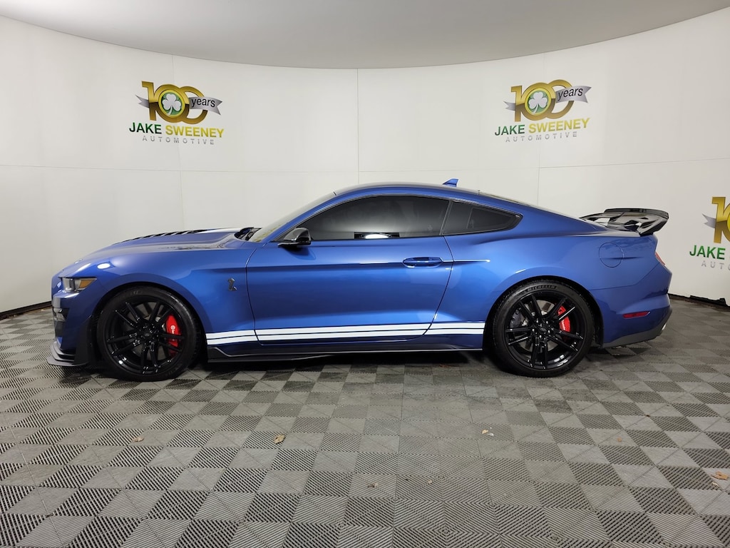 Heated Driver Seat, Cooled Driver Seat, Back-Up Camera, Supercharged, Satellite Radio Ford Shelby GT500 with Ford Performance Blue exterior and Ebony w/Smoke Gray Accents Recaro Leather Trimmed Seats w/ Miko Suede interior features a 8 Cylinder Engine with 760 HP at 7300 RPM*.