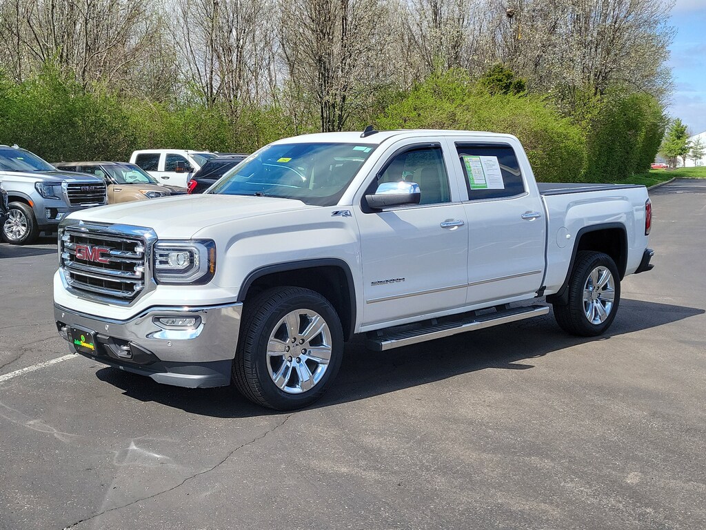 Have you ever wondered where to buy a Certified used car? Look no further! Jake Sweeney is here to Help. If you are in need of a new or used vehicle, we are offering you the ability to shop online and have your vehicle delivered to your home. Come visit us in store as well for a fun, fast, and easy car buying experience! White Frost Tricoat 2018 GMC Sierra 1500 SLT 4WD 8-Speed Automatic with Overdrive EcoTec3 5.3L V8 8-Speed Automatic with Overdrive, 4WD, Cocoa/Dune Leather.Recent Arrival! Odometer is 28316 miles below market average!