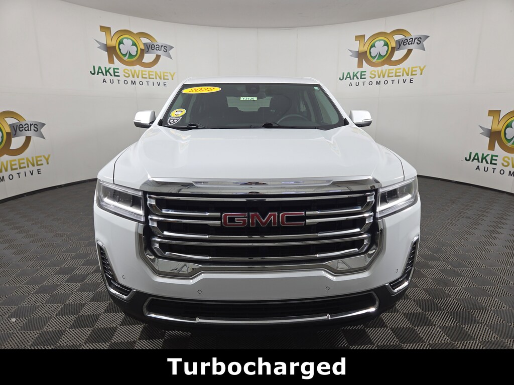 CARFAX One-Owner. Clean CARFAX. Summit White 2022 GMC Acadia SLE FWD 9-Speed Automatic 2.0L Turbocharged FWD, Jet Black Cloth.
