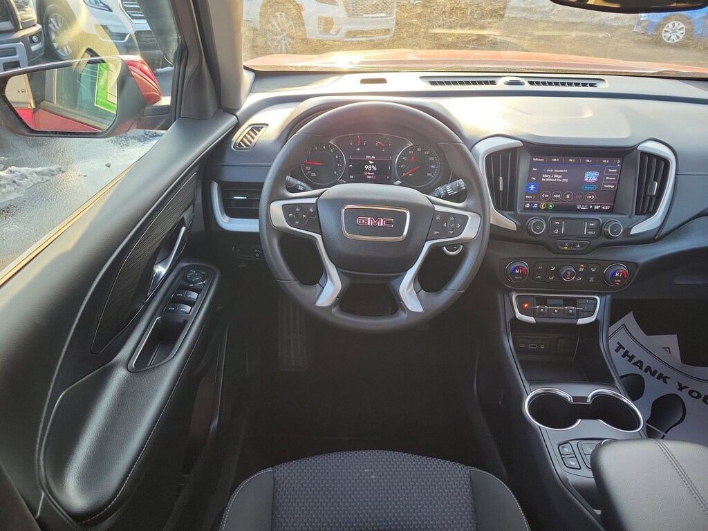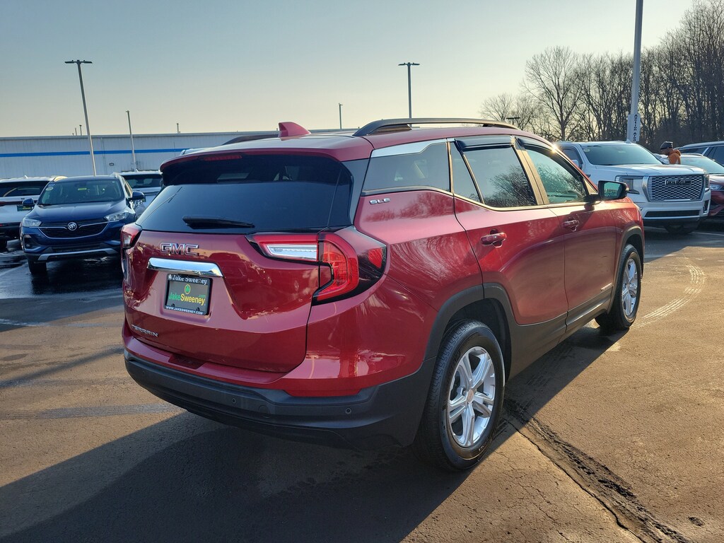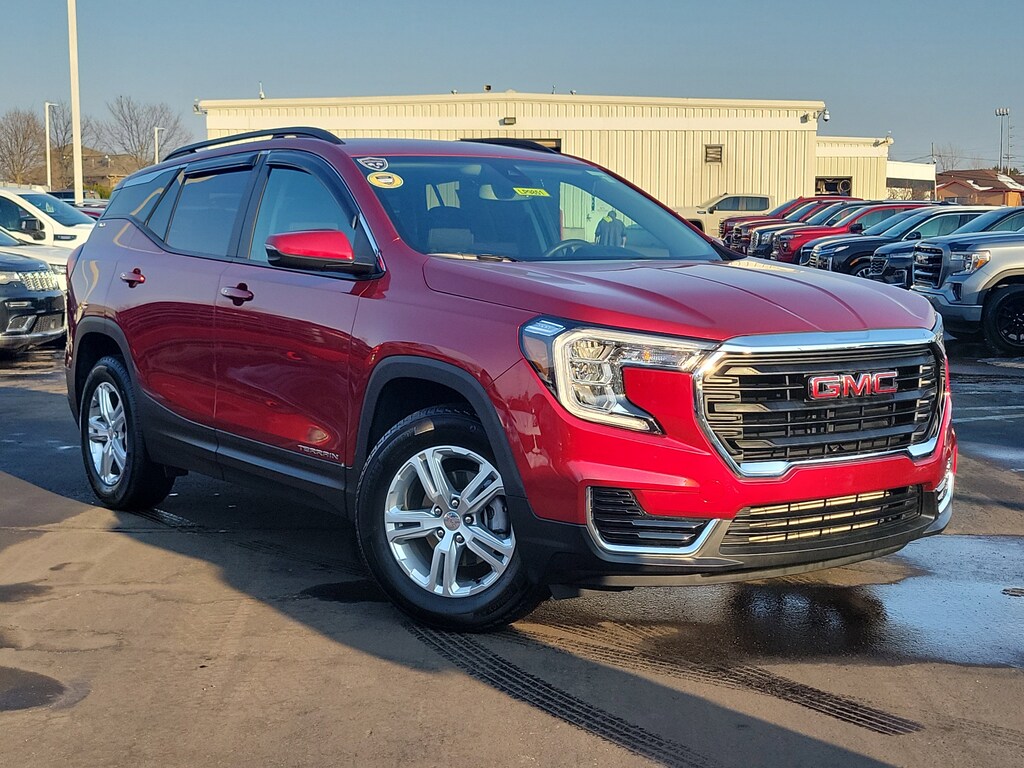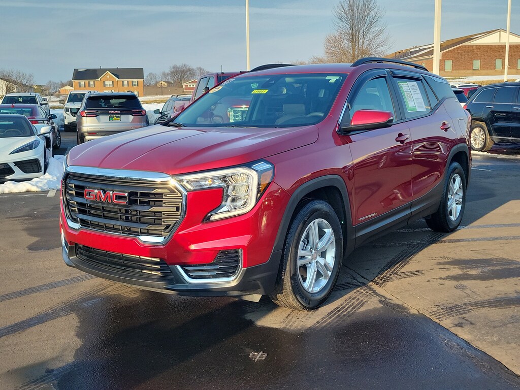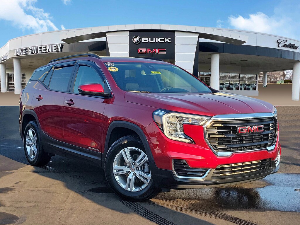 Have you ever wondered where to buy a Certified used car? Look no further! Jake Sweeney is here to Help. If you are in need of a new or used vehicle, we are offering you the ability to shop online and have your vehicle delivered to your home. Come visit us in store as well for a fun, fast, and easy car buying experience! Volcanic Red Tintcoat 2024 GMC Terrain SLE FWD 9-Speed Automatic 1.5L DOHC 120-Volt Power Outlet, 2 USB Data Ports, 2 USB Data Ports w/SD Card Reader, 4-Wheel Disc Brakes, 4.2" Multi-Color Driver Information Screen, 8-Way Power Driver Seat Adjuster, Adaptive Cruise Control, Air Conditioning, Auto High-beam Headlights, Auto-dimming Rear-View mirror, Automatic temperature control, Bluetooth® For Phone, Brake assist, Driver & Front Passenger Heated Seats, Driver Convenience Package, Dual-Zone Automatic Climate Control, Electronic Stability Control, Front reading lights, GMC Pro Safety Plus, HD Rear Vision Camera, Illuminated entry, Infotainment Package I, Lane Change Alert w/Side Blind Zone Alert, Outside Heated Power-Adjustable Mirrors, Outside temperature display, Power Driver Lumbar Control, Power Programmable Rear Liftgate, Power steering, Power windows, Preferred Equipment Group 3SA, Radio: GMC Infotainment Audio System w/Navigation, Rear Cross-Traffic Alert, Rear Park Assist, Rear seat center armrest, Rear window defroster, Rear window wiper, Remote keyless entry, Remote Start, Roof-Mounted Luggage Rack Side Rails, Safety Alert Seat, SiriusXM, Tachometer, Telescoping steering wheel, Tilt steering wheel, Trip computer, Variably intermittent wipers, Wheels: 17" x 7" Silver Painted Aluminum, Wireless Apple CarPlay/Wireless Android Auto.