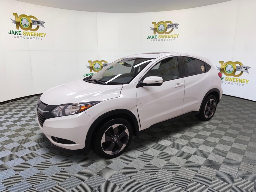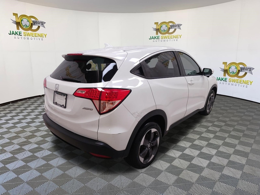 Enhance your journey with our 2018 Honda HR-V EX AWD displayed in White Orchid Pearl! Powered by a 1.8 Liter 4 Cylinder that delivers 138hp paired with an innovative CVT for easy efficiency. This All Wheel Drive SUV has a sporty vibe bolstered by a comfortable ride, excellent visibility, and the ability to see nearly 31mpg on the highway. Our HR-V is agile and efficient and lets you stand out from the crowd with bold styling, LED lighting, a power sunroof, a rear spoiler, power heated mirrors, and 17-inch alloy wheels.