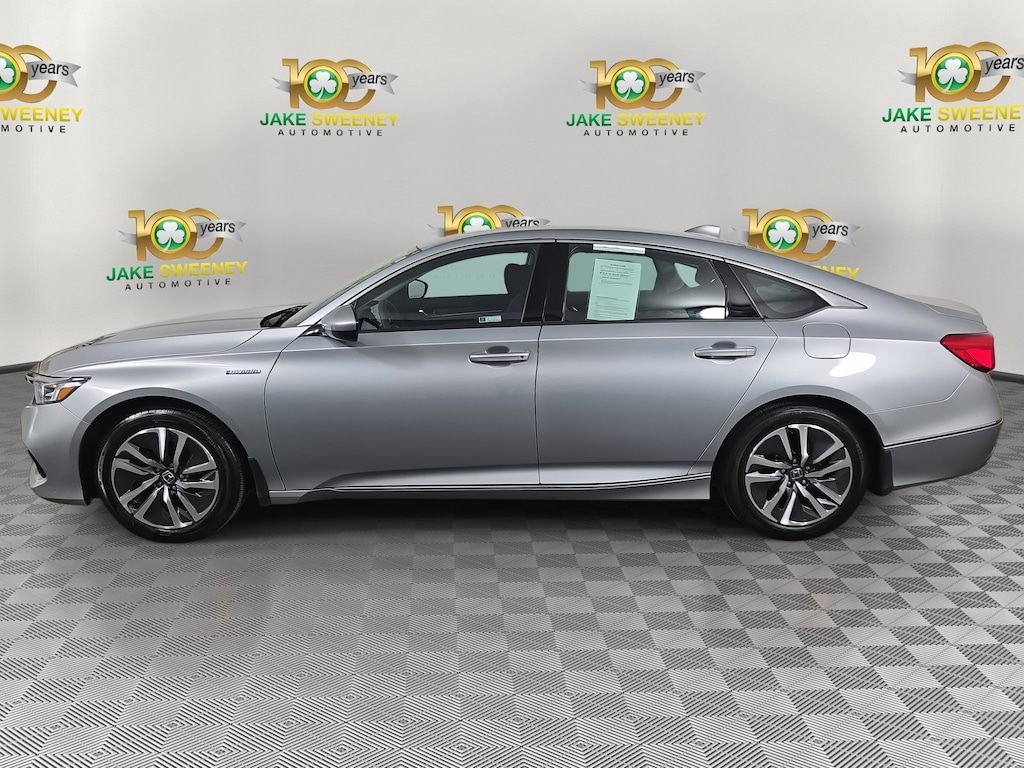 Well-equipped and completely capable, our 2021 Honda Accord Hybrid EX Sedan is a sleek fuel saver that looks fantastic in Lunar Silver Metallic! Powered by a 2.0 Liter 4 Cylinder and 2 Electric Motors offering a combined 212hp for an electronically controlled CVT with a Sport mode for bolder performance. This Front Wheel Drive sedan also boasts responsive handling and returns nearly 48mpg in any driving while showing off a sophisticated silhouette that's set off by LED lighting, fog lamps, a power sunroof, and alloy wheels.