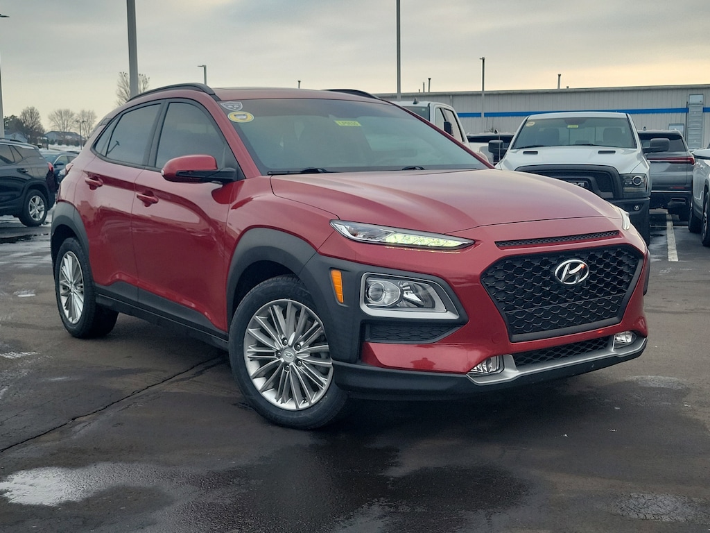 Have you ever wondered where to buy a Certified used car? Look no further! Jake Sweeney is here to Help. If you are in need of a new or used vehicle, we are offering you the ability to shop online and have your vehicle delivered to your home. Come visit us in store as well for a fun, fast, and easy car buying experience! Pulse Red 2021 Hyundai Kona SEL Plus AWD 6-Speed Automatic I4 Air Conditioning, AM/FM radio: SiriusXM, Apple CarPlay & Android Auto, Brake assist, Delay-off headlights, Electronic Stability Control, Emergency communication system: Blue Link Connected Car Service (3-year complimentary subscription), Exterior Parking Camera Rear, Four wheel independent suspension, Front Bucket Seats, Front Center Armrest, Front fog lights, Fully automatic headlights, Heated Front Bucket Seats, Heated front seats, Illuminated entry, Leather Shift Knob, Option Group 01, Panic alarm, Power driver seat, Power moonroof, Power steering, Power windows, Radio: AM/FM/MP3/HD Radio/SiriusXM Audio System, Rear Bumper Applique, Rear window defroster, Remote keyless entry, Speed-sensing steering, Split folding rear seat, Steering wheel mounted audio controls.
