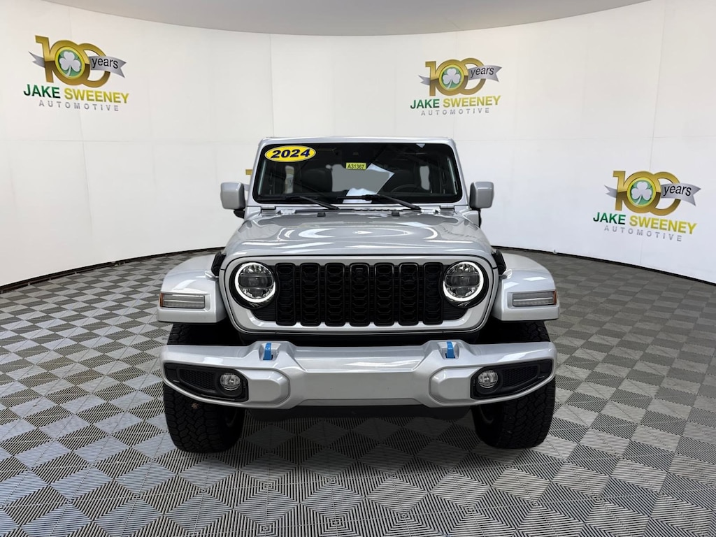 Our One Owner, No Accidents Reported, Miles Below Market Average 2024 Jeep Wrangler 4xe High Altitude 4X4 is highly capable, highly efficient, and highly entertaining in Silver Zynith! Motivated by a TurboCharged 2.0 Liter 4 Cylinder and 2 Electric Motors generating a combined 375hp for an 8 Speed Automatic transmission. It's plenty of power for pursuing off-road dreams with iconic Jeep performance, and you can go gas-free on the road or off with a 22-mile EV driving range. Shift into gas-hybrid mode to go hundreds of miles further at nearly 20mpg combined. Our Wrangler's bold style comes into play with LED lighting, fog lamps, blue tow hooks, 20-inch wheels, side steps, and a removable hardtop.
