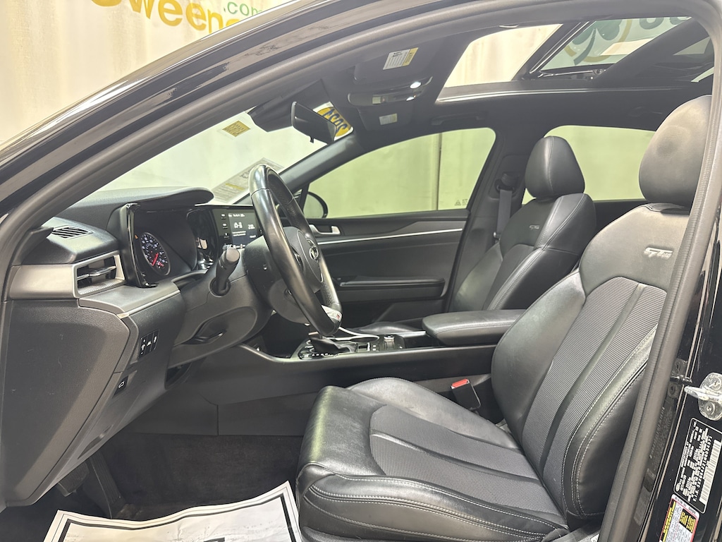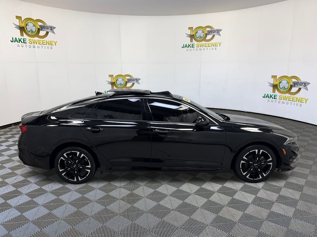 Go ahead and show off our 2021 Kia K5 GT-Line Sedan with you at the wheel and a bold Ebony Black finish on its sheet metal! Powered by a TurboCharged 1.6 Liter 4 Cylinder offering 180hp paired with an 8 Speed Automatic transmission for energetic performance. This Front Wheel Drive sedan taps into the joy of driving with its sophisticated suspension, and it returns nearly 37mpg on the highway to help save fuel. A stunning high-end design is yours to command with our K5, which boasts LED lighting, fog lamps, a sunroof, and aggressive body styling set off by 18-inch black-finished alloy wheels.