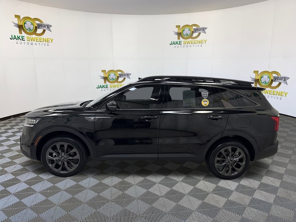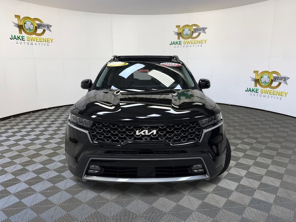 Our One Owner, No Accidents Reported 2023 Kia Sorento X-Line SX Prestige AWD is poised for premium adventures in Ebony Black! Motivated by a TurboCharged 2.5 Liter 4 Cylinder that supplies 281hp to an 8 Speed Automatic Dual-clutch transmission. This All Wheel Drive SUV adds torque vectoring and a locking center differential for athletic capability, and it achieves nearly 27mpg on the highway. Eager for action, our Sorento is an eye-catcher with X-Line design cues, Hyper Silver skid plates, a panoramic sunroof, LED lighting, fog lamps, high-utility roof rails, a hands-free tailgate, and 20-inch alloy wheels.