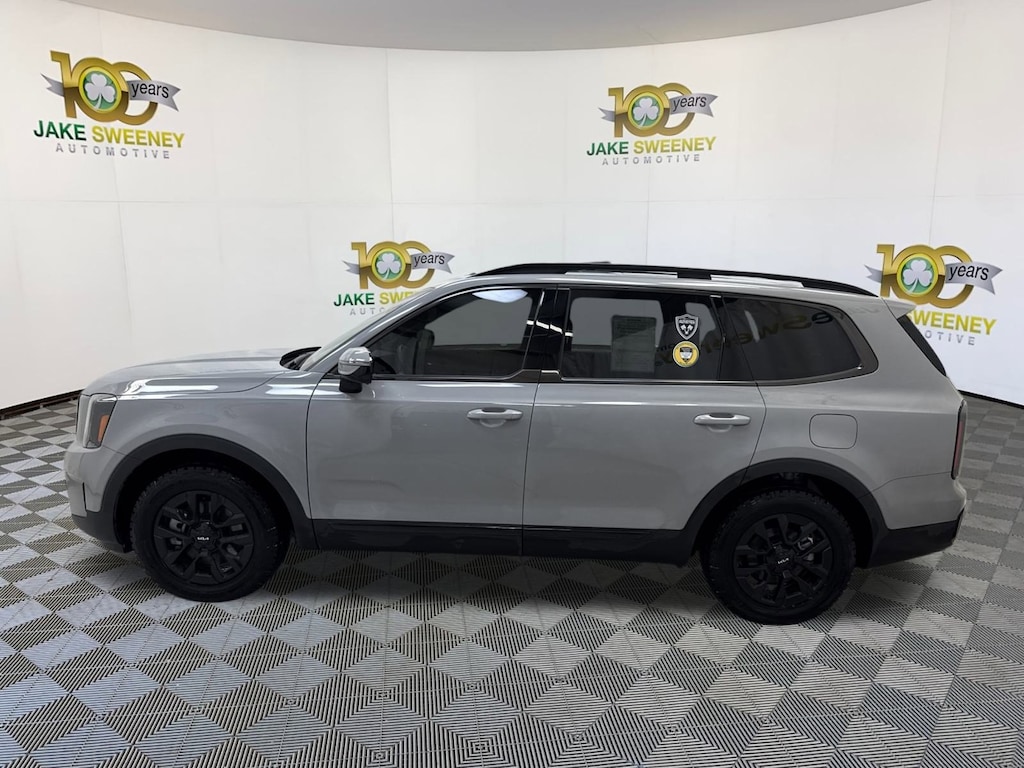 Our 2024 Kia Telluride SX Prestige X-Pro AWD is a bold expression of family confidence in Wolf Gray! Motivated by a 3.8 Liter V6 generating 291hp to an 8 Speed Automatic transmission with a dedicated tow mode for heavy trailers. Tough trails feel easy with a standard center-locking differential and self-leveling rear suspension, and this All Wheel Drive SUV returns nearly 24mpg on the highway. Prepare for stares, since our Telluride treats you to rugged X-Pro design cues, dual sunroofs, LED lighting, fog lamps, matte-black wheels, a hands-free liftgate, and high-utility roof rails.