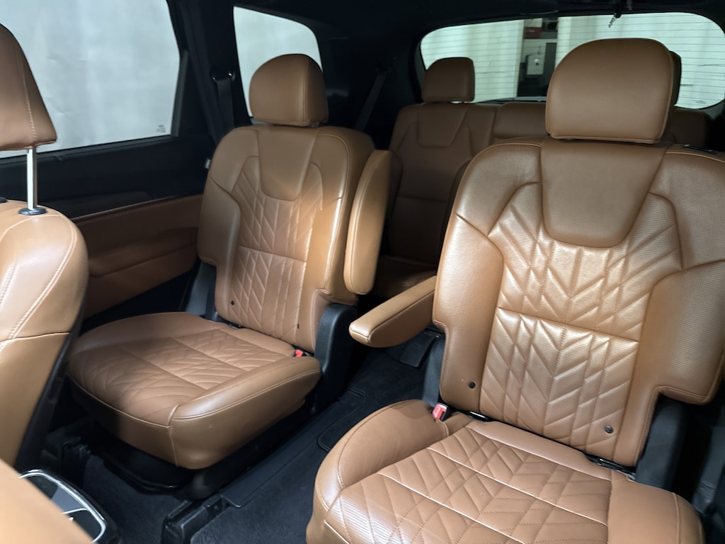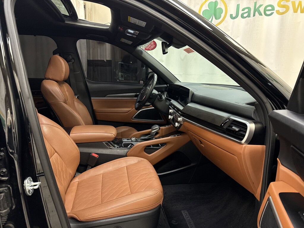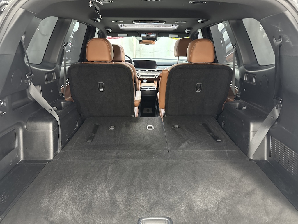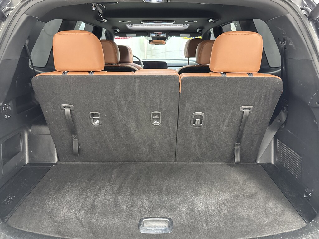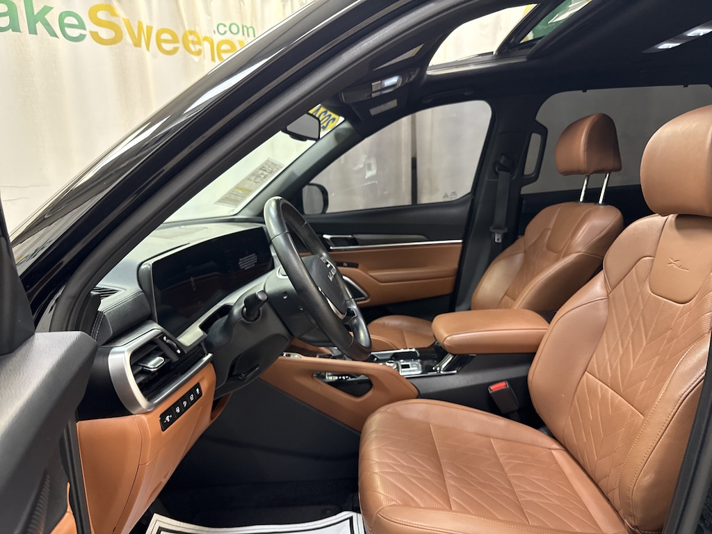 Climb inside our EX X-Line cabin, and you'll find first-class heated/ventilated leather power front seats, folding second and third rows, a heated leather steering wheel, dual-zone automatic climate control, 12V power outlets, remote start, keyless access/ignition, and sophisticated woodgrain trim. Eye-friendly infotainment awaits with a 12.3-inch touchscreen, a 12.3-inch driver display, full-color navigation, WiFi compatibility, wireless charging, Android Auto®/Apple CarPlay®, Bluetooth®, a cabin intercom system, and six-speaker audio.