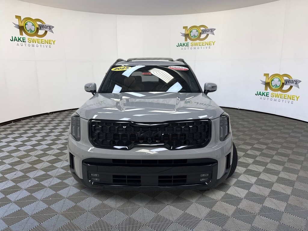 A family favorite, our 2025 Kia Telluride SX Prestige X-Line AWD in Wolf Gray brings bold comfort to your crew's next adventure! Motivated by a 3.8 Liter V6 generating 291hp for an 8 Speed Automatic transmission that puts muscular capability at your command. Also able to return nearly 23mpg on the highway, this All Wheel Drive SUV boasts increased ground clearance and a center-locking differential to help answer the call of the wild. Our Kia combines style and substance by showing off rugged X-Line details, dual sunroofs, LED lighting, fog lamps, gloss-black 20-inch wheels, a hands-free liftgate, and high-utility roof rails.