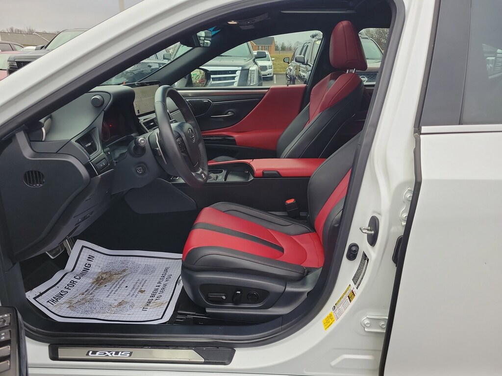 Have you ever wondered where to buy a Certified used car? Look no further! Jake Sweeney is here to Help. If you are in need of a new or used vehicle, we are offering you the ability to shop online and have your vehicle delivered to your home. Come visit us in store as well for a fun, fast, and easy car buying experience! White 2024 Lexus ES 350 F Sport FWD 8-Speed Automatic 3.5L V6 DOHC 24V Circuit Red w/F Aluminum Trim w/Perforated NuLuxe Seat Trim, 10-Way Power Adjustable Heated & Vent Front Seats, Adaptive Variable Suspension, Air Conditioning, Auto High-beam Headlights, Auto tilt-away steering wheel, Automatic temperature control, Brake assist, Delay-off headlights, Electrochromic Rear-View Mirror, Electronic Stability Control, Exterior Parking Camera Rear, F SPORT Handling Package, F SPORT Heated Leather 3-Spoke Steering Wheel, Four wheel independent suspension, Front & Rear Performance Rods, Front Bucket Seats, Front Center Armrest, Front dual zone A/C, Garage door transmitter: HomeLink, Head-Up Display (HUD), Heated front seats, Heated steering wheel, Leather steering wheel, Memory seat, Navigation, Navigation System, Perforated NuLuxe Seat Trim, Power driver seat, Power moonroof, Power passenger seat, Power steering, Power Tilt/Telescoping Steering Wheel w/Memory, Power windows, Radio: Lexus Interface w/8" Multimedia Touch Scrn, Rain Sensing Wipers, Rear Spoiler, Rear window defroster, Remote keyless entry, SmartAccess Key Card, Steering wheel memory, Steering wheel mounted audio controls, Technology Package, Telescoping steering wheel, Tilt steering wheel, Turn signal indicator mirrors, Ventilated front seats, Wheels: 19" x 8J Split-5-Spoke Alloy, Windshield De-Icer, Wireless Apple CarPlay/Wireless Android Auto, Wireless Charger.