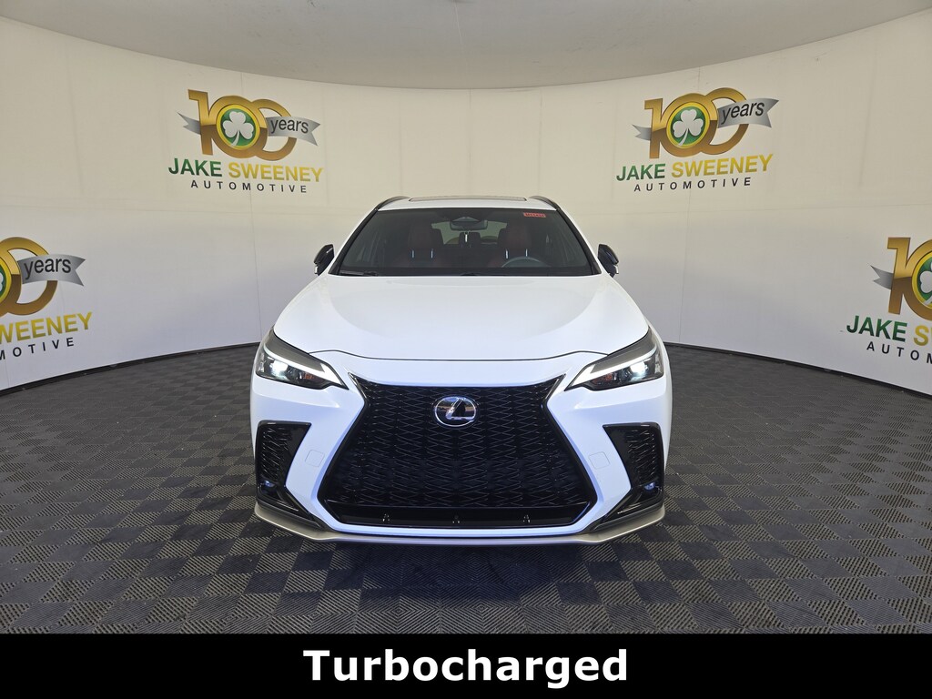 Our 2024 Lexus NX 350 F Sport Handling AWD is quick, comfortable, and ready to carve corners in Ultra White! Powered by a TurboCharged 2.4 Liter 4 Cylinder providing 275hp to a paddle-shifted 8 Speed Automatic transmission that puts you in control of the action. An adaptive variable suspension with performance dampers helps you master the curves, and this All Wheel Drive SUV returns nearly 28mpg on the highway. Exclusive 20-inch F Sport wheels and an aggressive front-end upgrade complement color-matched fenders, LED lighting, a power liftgate, blade-style taillamps, a sunroof, and roof rails for a sophisticated NX design.