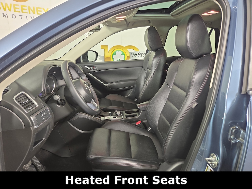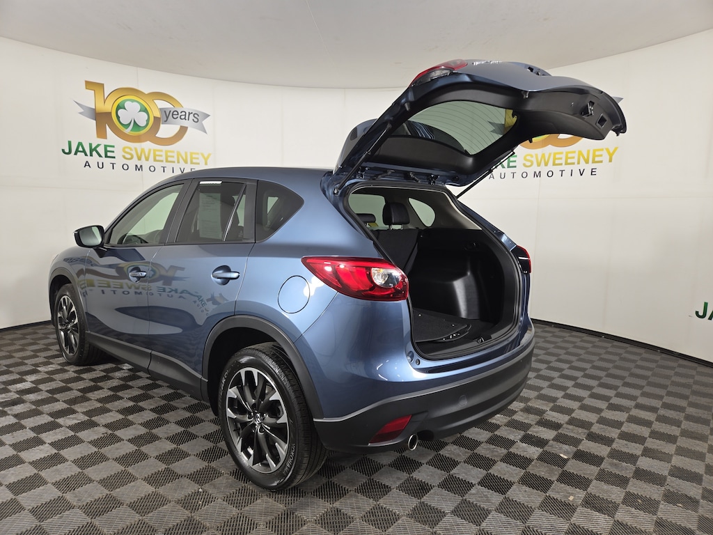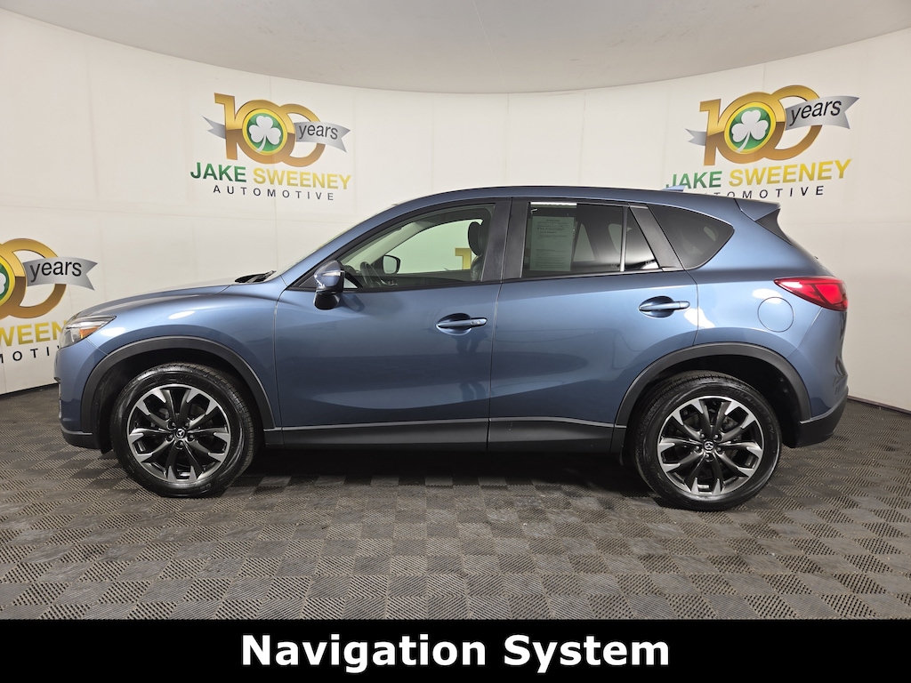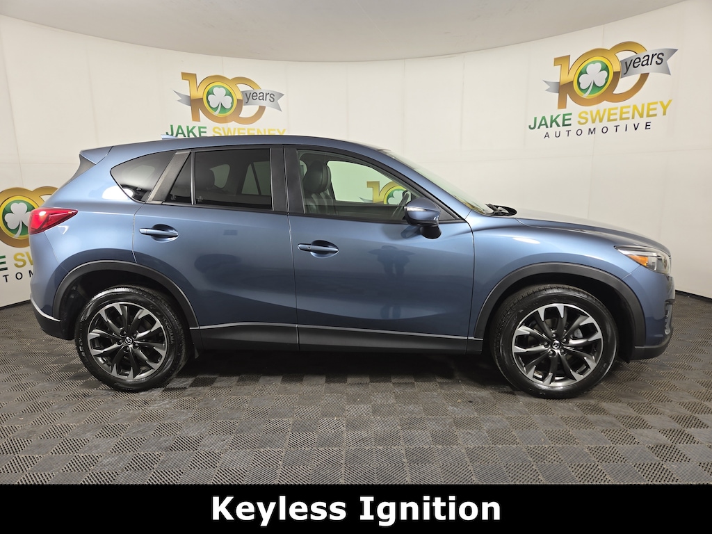 Our 2016 Mazda CX-5 Grand Touring AWD is presented in Blue Reflex Mica and is a blast to drive! Powered by a 2.5 Liter 4 Cylinder offering 184hp matched to a 6 Speed Automatic transmission for astonishing passing authority. You'll love the handling and grip of our All Wheel Drive SUV that boasts all-weather capability; plus, you'll conquer more highways with the incredible fuel economy of nearly 29mpg on the highway! Brilliantly engineered, our Mazda CX-5 Grand Touring is the pinnacle of aerodynamic design. It cuts through the air precisely thanks to its sleek stance and curvaceous build enhanced by prominent alloy wheels and a sunroof.