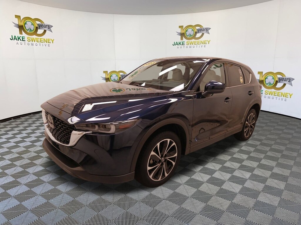 Our terrific One Owner 2023 Mazda CX-5 2.5 S Premium Plus AWD rides with refined performance in Deep Crystal Blue Mica! Powered by a 2.5 Liter 4 Cylinder generating 187hp connected to a paddle-shifted 6 Speed Automatic transmission for driver-focused adventures. You can also enjoy the added capability of dedicated Sport and Off-road modes, and this All Wheel Drive SUV sees nearly 30mpg on the highway. A stunning sight, our Mazda CX-5's design grabs attention with adaptive LED front lighting, a power sunroof, heated power-folding mirrors, a power liftgate, bright dual exhaust outlets, and black alloy wheels.