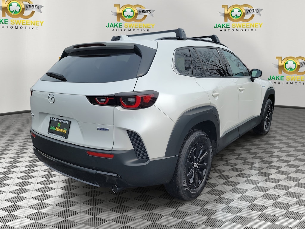 The sporty styling of our Accident Free, Certified Pre-Owned 2025 Mazda CX-50 Hybrid Premium eAWD looks fantastic in Wind Chill Pearl! Powered by a 2.5 Liter 4 Cylinder paired with three Electric Motors for a combined 219hp to an advanced CVT with multiple drive modes. Thanks to the responsive suspension, you can seek out twisty back roads confidently, and this All Wheel Drive SUV scores nearly 38mpg on the highway. Bold and sophisticated, our Premium features adaptive front LED lighting, a power liftgate, heated power mirrors, a panoramic sunroof, dual exhaust outlets, and eye-catching alloy wheels.