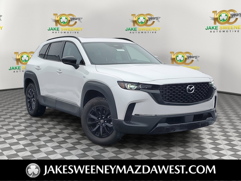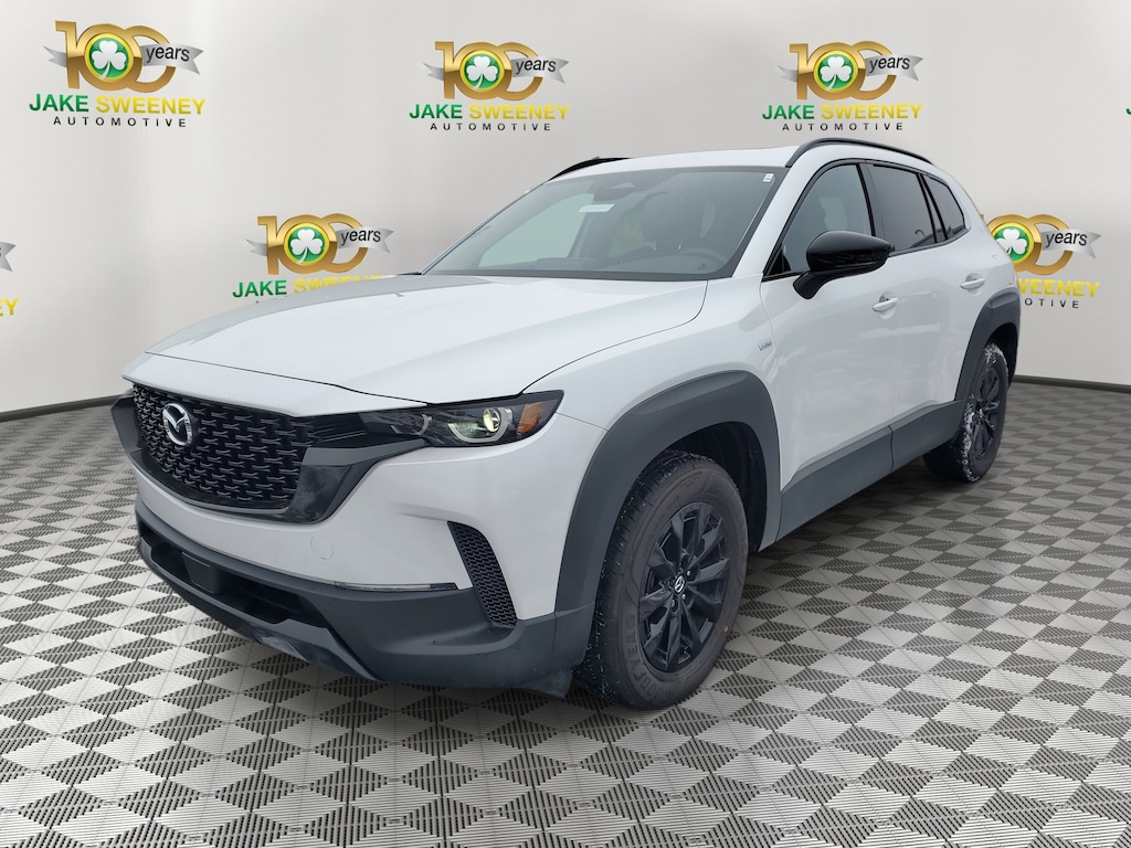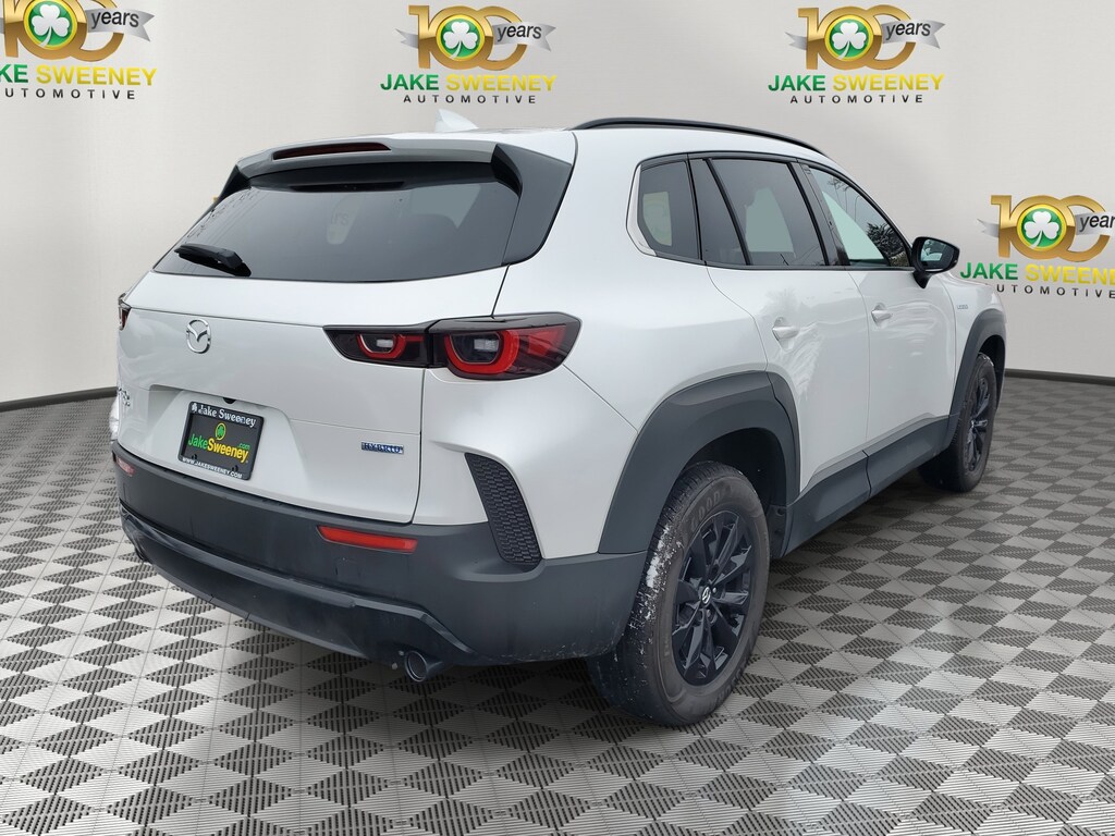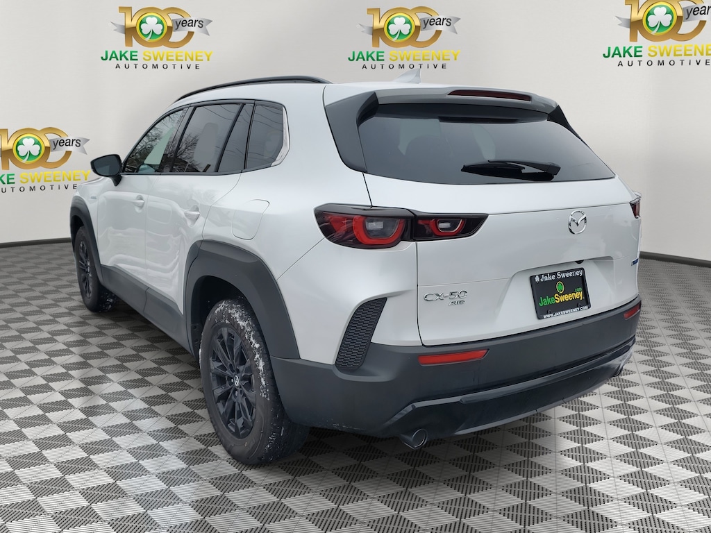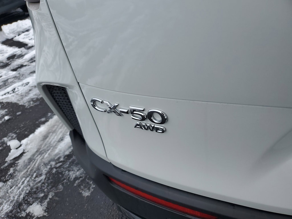 The sporty styling of our Dealer Certified 2025 Mazda CX-50 Hybrid Premium eAWD looks fantastic in Wind Chill Pearl! Powered by a 2.5 Liter 4 Cylinder paired with three Electric Motors for a combined 219hp to an advanced CVT with multiple drive modes. Thanks to the responsive suspension, you can seek out twisty back roads confidently, and this All Wheel Drive SUV scores nearly 38mpg on the highway. Bold and sophisticated, our Premium features adaptive front LED lighting, a power liftgate, heated power mirrors, sunroof, dual exhaust outlets, and eye-catching alloy wheels.