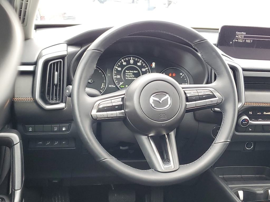 Our Premium details the rewarding comfort with features like heated leather power 8-way front seats, a leather-wrapped steering wheel, dual-zone automatic climate control, advanced keyless entry/ignition, and a Bose twelve-speaker sound system for a better listening experience. Additional technologies can deliver digital advantages with a 10.25-inch display, a Mazda Commander controller, wireless Apple CarPlay®/Android Auto®/Alexa, Bluetooth®, voice recognition, and wireless charging.