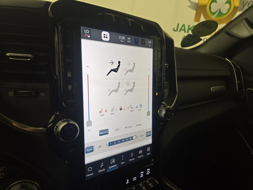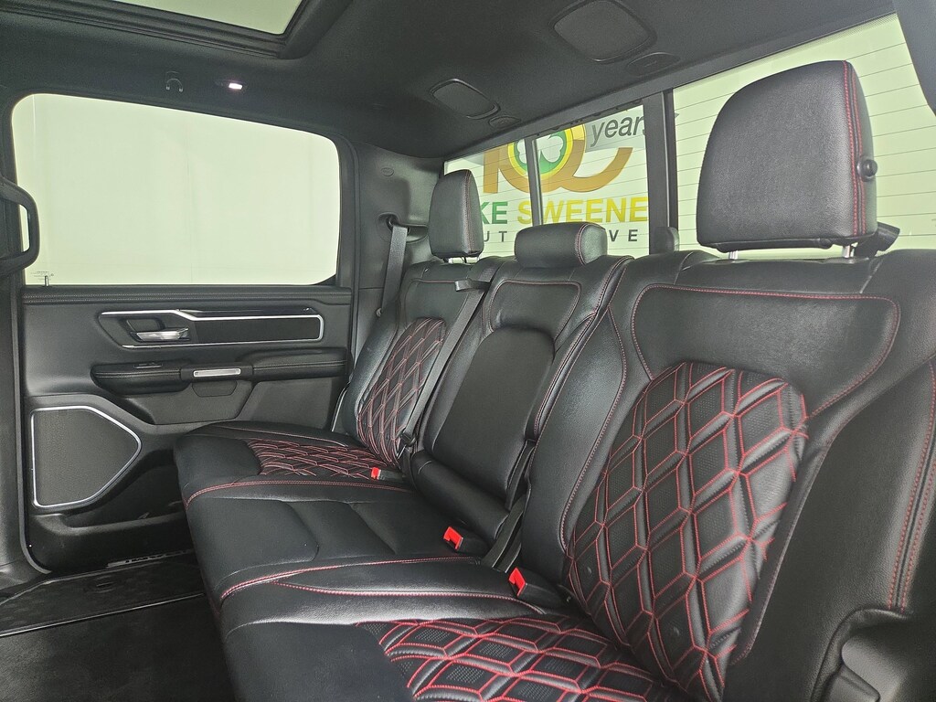 #1 Seat Foam Cushion, 3 Rear Seat Head Restraints, 4 Way Front Headrests, 4G LTE Wi-Fi Hot Spot, 8.4" Touchscreen Display, All Plant-Installed Decals, All R1 High Radios, All Radio Equipped Vehicles, Apple CarPlay, Auto High Beam Headlamp Control, Auto-Dimming Exterior Driver Mirror, Bed Utility Group, Black Interior Accents, Blind Spot & Cross Path Detection, Body Color Door Handles, Body Color Exterior Mirrors, Body Color Front Bumper, Body Color Premium Power Mirrors, Body Color Rear Bumper w/Step Pads, Bucket Seats, Connected Travel & Traffic Services, Connectivity - US/Canada, Convex Wide-Angle Mirror Insert, Delete LED Lamp - Floor Console Bin, Disassociated Touchscreen Display, Driver Seat Memory, Exterior Mirrors Courtesy Lamps, Exterior Mirrors w/Heating Element, Exterior Mirrors w/Memory, Exterior Mirrors w/Supplemental Signals, Foam Bottle Insert (Door Trim Panel), For Details, Visit DriveUconnect.com, For More Info, Call 800-643-2112, Front Seat Back Map Pockets, Full Length Upgraded Floor Console, Global Telematics Box Module (TBM), Google Android Auto, GPS Antenna Input, GPS Navigation, Grille Surround 3 Body Color Tex 2 Black, harman/kardon 19 Speaker Premium Sound, HD Radio, Heated Front Seats, Heated Second Row Seats, Heated Steering Wheel, Integrated Center Stack Radio, Integrated Voice Command w/Bluetooth, Laramie Level 2 Equipment Group (DISC), Leather Trimmed Bucket Seats, MOPAR 4 Adjustable Cargo Tie-Down Hooks, MOPAR Spray In Bedliner, ParkSense Front/Rear Park Assist w/Stop, Pick-Up Box Lighting, Power 2-Way Driver Lumbar Adjust, Power 2-Way Passenger Lumbar Adjust, Power 8-Way Driver & Passenger Seats, Power-Folding Mirrors, Quick Order Package 25H Laramie, Radio: Uconnect 5 Nav w/8.4" Display, Rain Sensitive Windshield Wipers, Rear 60/40 Folding Seat, Rear 60/40 Folding Split Recline Seat, Rear Underseat Compartment Storage, Remote Tailgate Release, SiriusXM Radio Service, SiriusXM w/360L, Sport Appearance Package, Sport Decal, Sport Performance Hood, Twill Film Appliques, USB Host Flip, Ventilated Front Seats, Wheels: 20" x 9" Premium Painted w/Inserts.