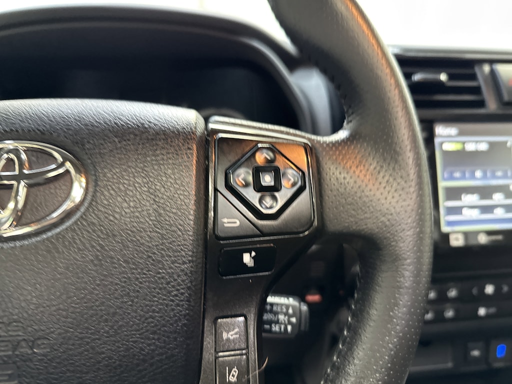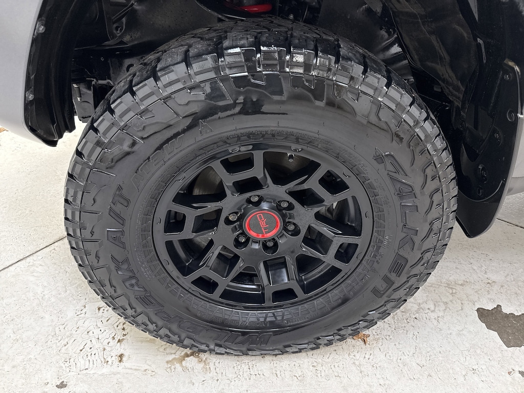 There's a lot to like in our TRD Pro cabin, which comes with SofTex® heated power front seats with red headrest lettering, a leather-wrapped steering wheel, a TRD shift knob, dual-zone automatic climate control, and Smart Key access with pushbutton ignition. Impressive infotainment resources are standard and include an 8-inch touchscreen, connected navigation, Bluetooth®, Android Auto®/Apple CarPlay®, WiFi/Amazon Alexa compatibility, and a 15-speaker JBL sound system.