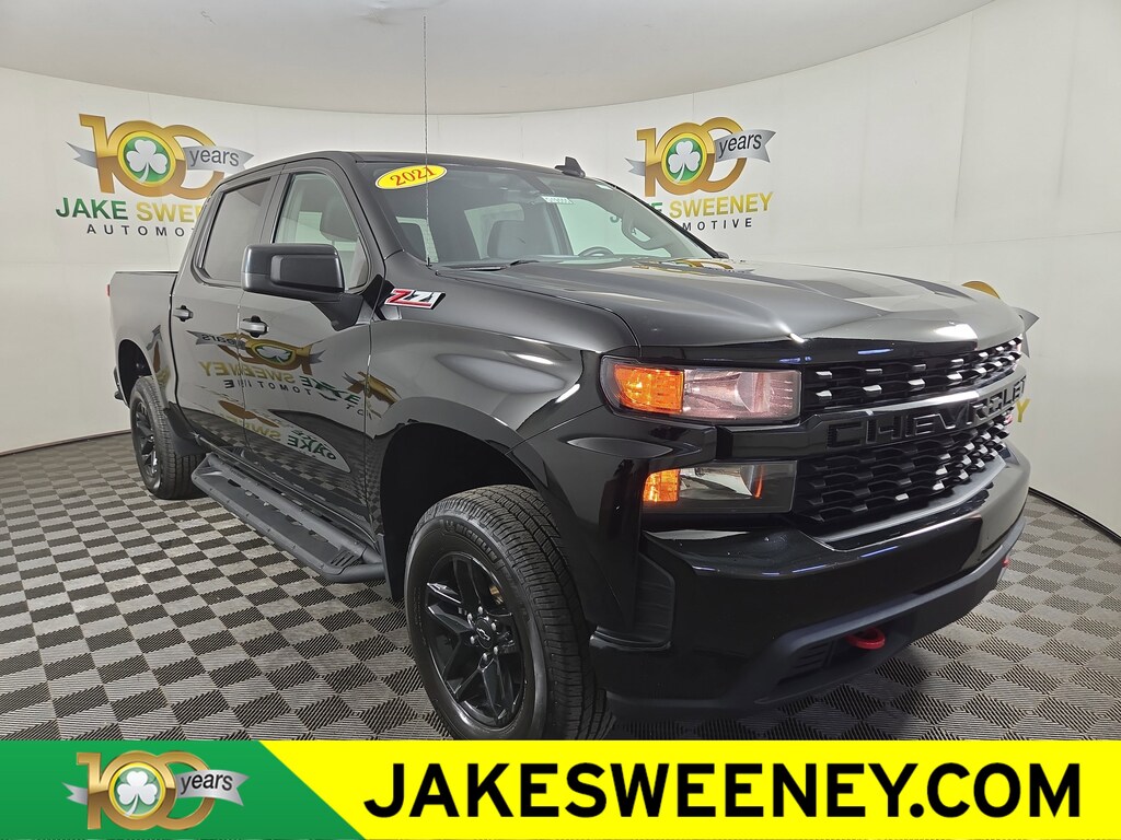 Jake Sweeney Is Here to Help! If you are in need of a new or used vehicle, we are offering you the ability to shop online and have your vehicle delivered to your home. Black 2021 Chevrolet Silverado 1500 Custom Trail Boss 4WD 6-Speed Automatic Electronic with Overdrive EcoTec3 5.3L V8 LIFETIME POWERTRAIN WARRANTY, TRAILER BRAKE CONTROLLER, 6-Speed Automatic Electronic with Overdrive, 4WD, Jet Black Cloth, 170 Amp Alternator, 3.5" Diagonal Monochromatic Display, 4G LTE Wi-Fi Hot Spot Capable, All-Weather Floor Liner (LPO) (AAK), Auto-Locking Rear Differential, Black Dual Exhaust Tips, Bluetooth® For Phone, Chevrolet Connected Access Capable, Chevytec Spray-On Black Bedliner, Color-Keyed Carpeting Floor Covering, Compass, Custom Convenience Package, Deep-Tinted Glass, Electric Rear-Window Defogger, Electronic Cruise Control, EZ Lift Power Lock & Release Tailgate, Front Rubberized Vinyl Floor Mats, Heavy-Duty Air Filter, High Gloss Black Grille, Hill Descent Control, Hitch Guidance, Infotainment Package, LED Cargo Area Lighting, Manual Tilt Wheel Steering Column, Midnight Edition, Off-Road Assist Steps (LPO), OnStar & Chevrolet Connected Services Capable, Performance Red Recovery Hooks, Power Door Locks, Power Front Windows w/Driver Express Up/Down, Power Front Windows w/Passenger Express Down, Power Rear Windows w/Express Down, Preferred Equipment Group 2CX, Rear 60/40 Folding Bench Seat (Folds Up), Rear Rubberized-Vinyl Floor Mats, Remote Keyless Entry, Remote Vehicle Starter System, Silver-Hammer Interior Trim Kit (LPO), SiriusXM Radio, Standard Tailgate, Suspension Package, Theft Deterrent System (Unauthorized Entry), Trailering Package.