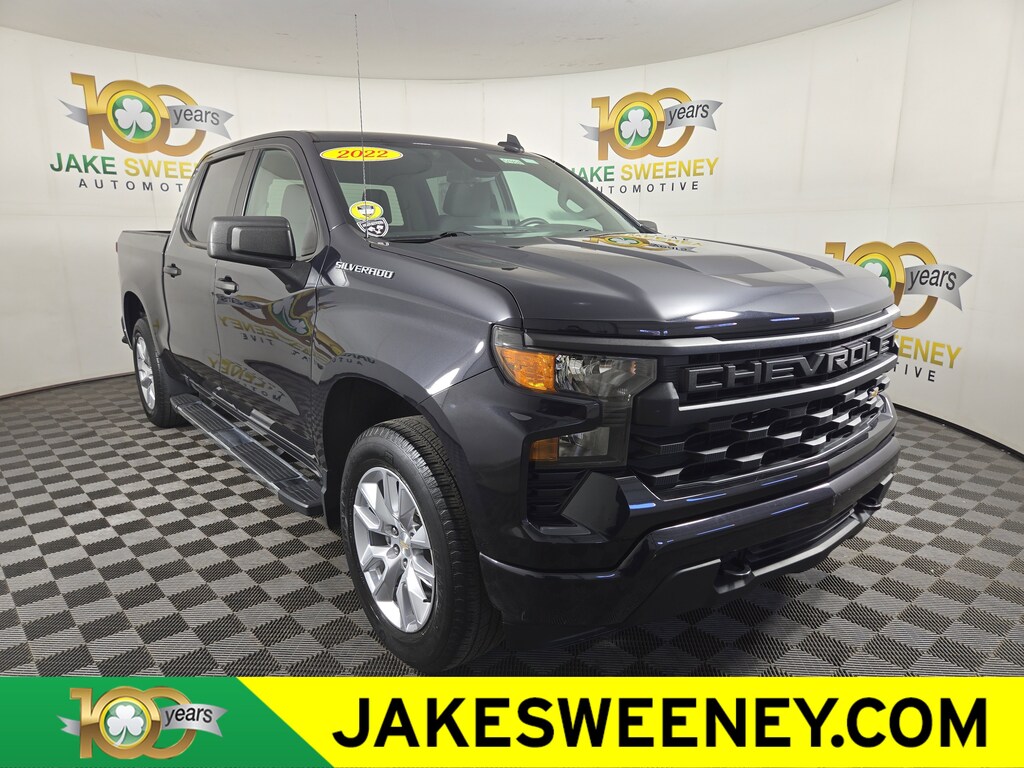 Jake Sweeney Is Here to Help! If you are in need of a new or used vehicle, we are offering you the ability to shop online and have your vehicle delivered to your home. Dark Ash Metallic 2022 Chevrolet Silverado 1500 Custom 4WD 8-Speed Automatic 2.7L Turbo LIFETIME POWERTRAIN WARRANTY, 8-Speed Automatic, 4WD, Jet Black Cloth, 10-Way Power Driver Seat w/Lumbar, 120-Volt Bed Mounted Power Outlet, 120-Volt Instrument Panel Power Outlet, 3.5" Monochromatic Display Driver Info Center, Bluetooth® For Phone, Chevrolet Connected Access Capable, Color-Keyed Carpeting Floor Covering, Compass, Custom Convenience Package, Custom Value Package, Deep-Tinted Glass, Dual Rear USB Ports (Charge Only), Electric Rear-Window Defogger, Electrical Steering Column Lock, Electronic Cruise Control, EZ Lift Power Lock & Release Tailgate, Front Frame-Mounted Black Recovery Hooks, Front Rubberized Vinyl Floor Mats, HD Rear Vision Camera, Hitch Guidance, LED Cargo Area Lighting, Manual Tilt Wheel Steering Column, OnStar & Chevrolet Connected Services Capable, Power Front Windows w/Driver Express Up/Down, Power Front Windows w/Passenger Express Down, Power Rear Windows w/Express Down, Preferred Equipment Group 1CX, Rear 60/40 Folding Bench Seat (Folds Up), Rear Rubberized-Vinyl Floor Mats, Remote Keyless Entry, Remote Vehicle Starter System, SiriusXM Radio, Standard Tailgate, Theft Deterrent System (Unauthorized Entry), Trailering Package, Wi-Fi Hot Spot Capable, Wireless Phone Projection.Odometer is 7836 miles below market average!