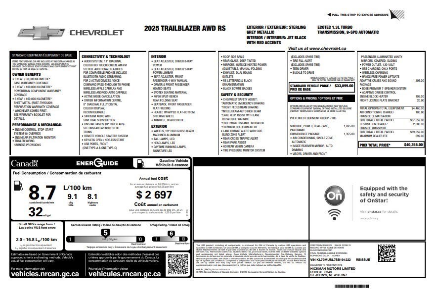 Jake Sweeney Is Here to Help! If you are in need of a new or used vehicle, we are offering you the ability to shop online and have your vehicle delivered to your home. Sterling Gray Metallic 2025 Chevrolet TrailBlazer RS AWD 9-Speed Automatic 1.3L I3 Turbocharged DOHC 12V LEV3-SULEV30 155hp