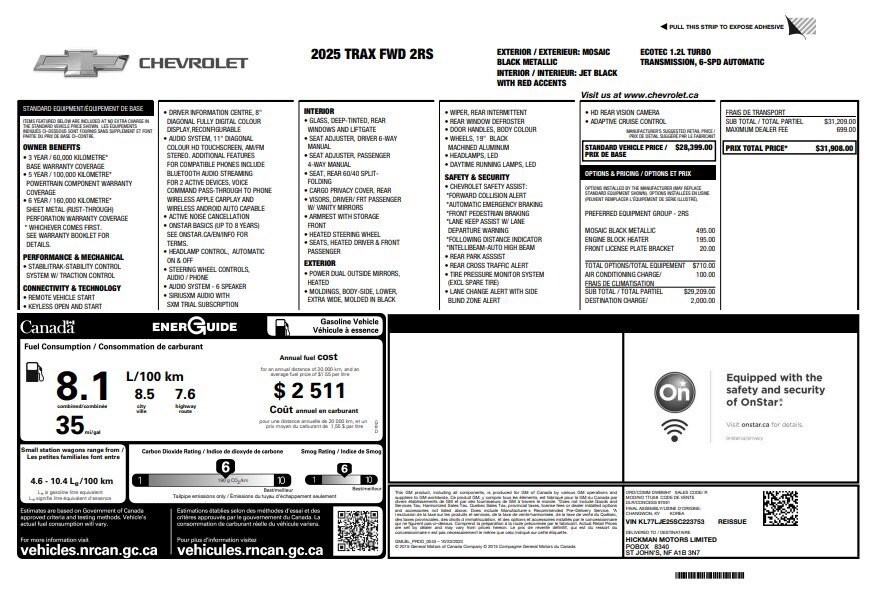 Jake Sweeney Is Here to Help! If you are in need of a new or used vehicle, we are offering you the ability to shop online and have your vehicle delivered to your home. Mosaic Black Metallic 2025 Chevrolet Trax 2RS FWD 6-Speed Automatic 1.2L I3 DI Turbocharged DOHC 12V LEV3-ULEV70 137hp