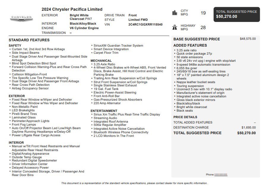 Jake Sweeney Is Here to Help! If you are in need of a new or used vehicle, we are offering you the ability to shop online and have your vehicle delivered to your home. Bright White Clearcoat 2024 Chrysler Pacifica Limited FWD 9-Speed 948TE Automatic 3.6L V6 24V VVT
