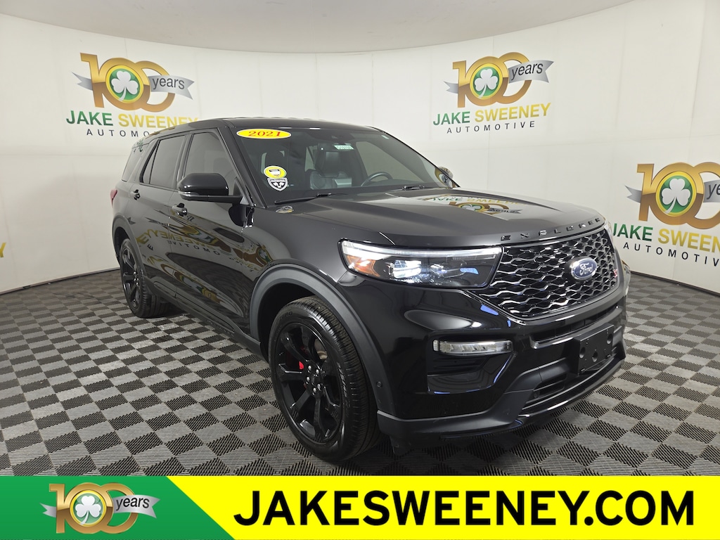 Jake Sweeney Is Here to Help! If you are in need of a new or used vehicle, we are offering you the ability to shop online and have your vehicle delivered to your home. Agate Black Metallic 2021 Ford Explorer ST 4WD 10-Speed Automatic 3.0L EcoBoost V6 LIFETIME POWERTRAIN WARRANTY, 4WD, 10.1" LCD Capacitive Portrait Touchscreen, 110V/150W AC Power Outlet, 2 Additional Speakers, 360-Degree Camera w/Split View, Active Park Assist 2.0, Auto-Dimming Rearview Mirror (Interior), Equipment Group 401A, Evasive Steering Assist, Ford Co-Pilot360 Assist+, FordPass Connect, Forward Sensing System, Front Rain-Sensing Wipers, Hands-Free Foot-Activated Liftgate, Intelligent Adaptive Cruise Control, Leather Htd/Ventilated Sport Captain's Chairs, Memory Driver's Seat, Performance Front & Rear Brakes, Power Tilt/Telescoping Steering Column, Premium Technology Package, Radio: B&O Sound System by Bang & Olufsen, Reverse Brake Assist, Second Row Heated Seats, Sideview Mirrors w/Gloss Black Caps, Speed Sign Recognition, ST High Package, ST Street Pack, SYNC 3 Communications & Entertainment System, Third Row PowerFold (Folds Flat), Universal Garage Door Opener (UGDO), Voice-Activated Touchscreen Navigation System, Wheels: 21" Aluminum, Wireless Charging Pad.Recent Arrival! Odometer is 60472 miles below market average!