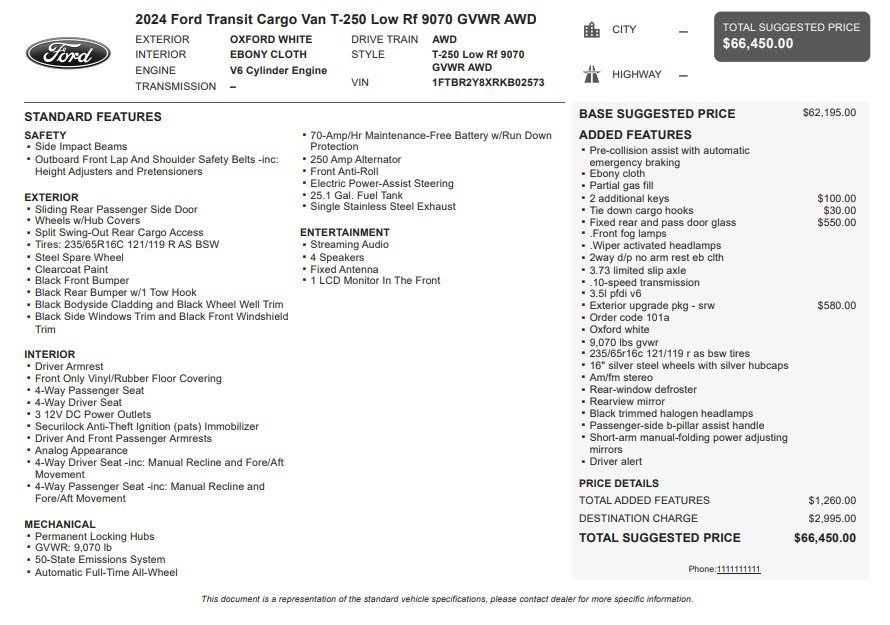 Jake Sweeney Is Here to Help! If you are in need of a new or used vehicle, we are offering you the ability to shop online and have your vehicle delivered to your home. White 2024 Ford Transit-250 AWD 10-Speed Automatic with Overdrive 3.5L V6 Flex Fuel