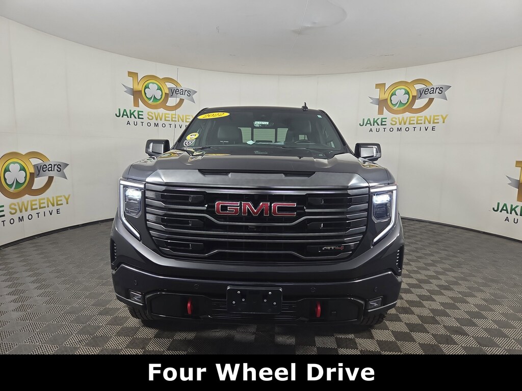 Jake Sweeney Is Here to Help! If you are in need of a new or used vehicle, we are offering you the ability to shop online and have your vehicle delivered to your home. Titanium Rush Metallic 2022 GMC Sierra 1500 AT4 4WD 10-Speed Automatic EcoTec3 6.2L V8 LIFETIME POWERTRAIN WARRANTY, 10-Speed Automatic, 4WD, Jet Black With Kalahari Accents Leather, 120-Volt Bed Mounted Power Outlet, 120-Volt Instrument Panel Power Outlet, 2 Charge/Data USB Ports Inside Center Console, 2 Type-C Charge-Only Rear USB Ports, 2 USB Ports, 220 Amp Alternator, Adaptive Cruise Control, AT4 Preferred Package, Auto-Locking Rear Differential, Bed View Camera, Black Chrome Header & Grille Insert Bars, Color-Keyed Carpeting Floor Covering, Compass, Deep-Tinted Glass, Electric Rear-Window Defogger, Electrical Steering Column Lock, Floor-Mounted Center Console, Front Prem Floor Liners w/Removable Carpet Insert, Front Rainsensing Wipers, GMC Connected Access Capable, HD Rear Vision Camera, HD Surround Vision, Heated 2nd Row Outboard Seats, Heated Driver & Front Outboard Passenger Seating, Heated Steering Wheel, Heavy-Duty Air Filter, Hill Descent Control, Hitch Guidance, Hitch Guidance w/Hitch View, In-Vehicle Trailering App, Integrated Trailer Brake Controller, Keyless Open & Start, LED Cargo Area Lighting, Multicolor 15" Diagonal Head-Up Display, OnStar & GMC Connected Services Capable, Perimeter Lighting, Power Door Locks, Power Front Passenger Windows w/Express Up/Down, Power Front Windows w/Driver Express Up/Down, Power Rake & Telescoping Steering Column, Power Rear Windows w/Express Down, Power Sliding Rear Window w/Rear Defogger, Preferred Equipment Group 4SB, Premium Bose 7-Speaker Sound System, Push Button Start, Rear Camera Mirror, Rear Cross Traffic Braking, Rear Pedestrian Detection, Rear Prem Floor Liners w/Removable Carpet Insert, Rear Wheelhouse Liners, Red Recovery Hooks, Remote Vehicle Starter System, Sierra Safety Plus Package, SiriusXM w/360L, Spray-On Pickup Bed Liner w/AT4 Logo, Steering Wheel Audio Controls, Technology Package, Theft Deterrent System (Unauthorized Entry), Trailer Camera Provisions, Trailer Side Blind Zone Alert, Trailering Package, Ultrasonic Front & Rear Park Assist, Universal Home Remote, Ventilated Driver & Front Passenger Seats, Wheels: 20" x 9" Machined Aluminum, Wi-Fi Hotspot Capable, Wireless Charging, Wireless Phone Projection.