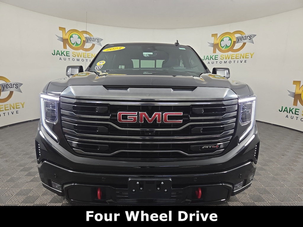 Jake Sweeney Is Here to Help! If you are in need of a new or used vehicle, we are offering you the ability to shop online and have your vehicle delivered to your home. Onyx Black 2023 GMC Sierra 1500 AT4 4WD 10-Speed Automatic EcoTec3 6.2L V8 REMAINDER OF FACTORY WARRANTY, LIFETIME POWERTRAIN WARRANTY, SUNROOF, 10-Speed Automatic, 4WD, Jet Black With Kalahari Accents Leather, 120-Volt Bed Mounted Power Outlet, 120-Volt Instrument Panel Power Outlet, 2 Charge/Data USB Ports Inside Center Console, 2 Type-C Charge-Only Rear USB Ports, 2 USB Ports, 220 Amp Alternator, Adaptive Cruise Control, AT4 Preferred Package, Auto-Locking Rear Differential, Bed View Camera, Black Chrome Header & Grille Insert Bars, Color-Keyed Carpeting Floor Covering, Compass, Deep-Tinted Glass, Electric Rear-Window Defogger, Electrical Steering Column Lock, Floor-Mounted Center Console, Front Prem Floor Liners w/Removable Carpet Insert, Front Rainsensing Wipers, GMC Connected Access Capable, HD Surround Vision, Heated 2nd Row Outboard Seats, Heated Driver & Front Outboard Passenger Seating, Heavy-Duty Air Filter, Hill Descent Control, Hitch Guidance, Hitch Guidance w/Hitch View, In-Vehicle Trailering App, Integrated Trailer Brake Controller, Keyless Open & Start, LED Cargo Area Lighting, Multicolor 15" Diagonal Head-Up Display, OnStar & GMC Connected Services Capable, Perimeter Lighting, Power Door Locks, Power Front Passenger Windows w/Express Up/Down, Power Front Windows w/Driver Express Up/Down, Power Rake & Telescoping Steering Column, Power Rear Windows w/Express Down, Power Sliding Rear Window w/Rear Defogger, Preferred Equipment Group 4SB, Premium Bose 7-Speaker Sound System, Push Button Start, Rear Camera Mirror, Rear Cross Traffic Braking, Rear Pedestrian Detection, Rear Prem Floor Liners w/Removable Carpet Insert, Rear Wheelhouse Liners, Red Recovery Hooks, Remote Vehicle Starter System, SiriusXM w/360L, Spray-On Pickup Bed Liner w/AT4 Logo, Steering Wheel Audio Controls, Technology Package, Theft Deterrent System (Unauthorized Entry), Trailer Camera Provisions, Trailer Side Blind Zone Alert, Trailering Package, Ultrasonic Front & Rear Park Assist, Universal Home Remote, Ventilated Driver & Front Passenger Seats, Wi-Fi Hotspot Capable, Wireless Charging, Wireless Phone Projection.