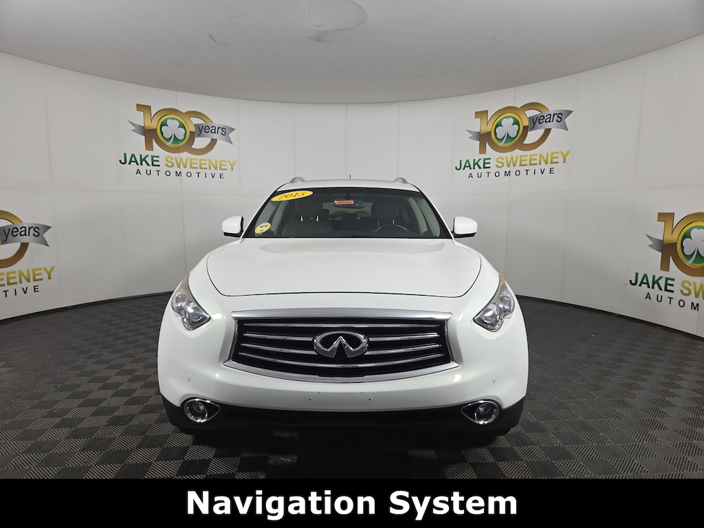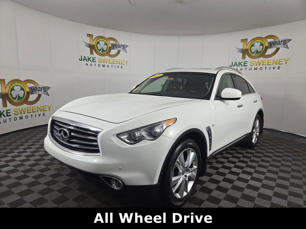Jake Sweeney Is Here to Help! If you are in need of a new or used vehicle, we are offering you the ability to shop online and have your vehicle delivered to your home. Moonlight White 2015 INFINITI QX70 AWD 7-Speed Automatic 3.7L V6 DOHC 24V 20" x 8" 5-Spoke Aluminum-Alloy Wheels, Aluminum Pedals, Aluminum Roof Rails, Around View Monitor w/Front & Rear Sonar System, Climate-Controlled Front Seats, Deluxe Touring Package, Dual Occupant Memory System, Entry & Exit Assist System, Maple Interior Accents, Outside Mirrors w/Reverse Tilt-Down Feature, Power Tilt/Telescopic Steering Column, Premium Package, Quilted Leather-Appointed Seat Trim, Radio: INFINITI Hard Drive Navigation System, Tonneau Cover.Recent Arrival! Odometer is 14722 miles below market average!Awards:* JD Power Initial Quality Study (IQS)Reviews:* If you prefer the safety and tall ride height of a midsize SUV, but also crave the driving dynamics of low-slung sports sedan, the 2015 INFINITI QX70 luxury crossover SUV will satisfy both needs and for less money than a comparably equipped Porsche or BMW SUV. Source: KBB.com* Sporty performance; luxurious interior; abundant standard features; easy-to-use electronics interface; distinctive style. Source: Edmunds