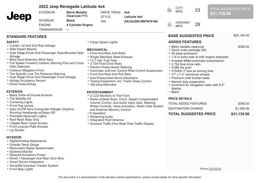 Jake Sweeney Is Here to Help! If you are in need of a new or used vehicle, we are offering you the ability to shop online and have your vehicle delivered to your home. Bikini Metallic Clearcoat 2022 Jeep Renegade Latitude 4WD 9-Speed 948TE Automatic 1.3L I4