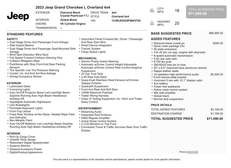 Jake Sweeney Is Here to Help! If you are in need of a new or used vehicle, we are offering you the ability to shop online and have your vehicle delivered to your home. Diamond Black Crystal Pearlcoat 2023 Jeep Grand Cherokee L Overland 4WD 8-Speed Automatic 3.6L V6 24V VVT