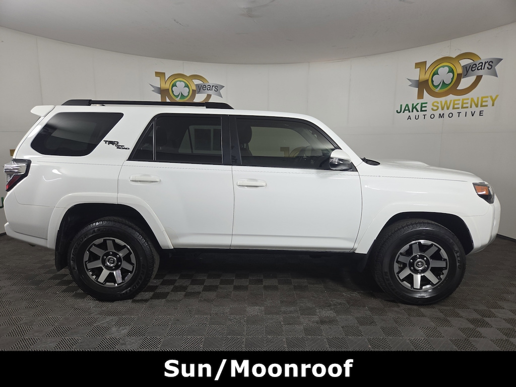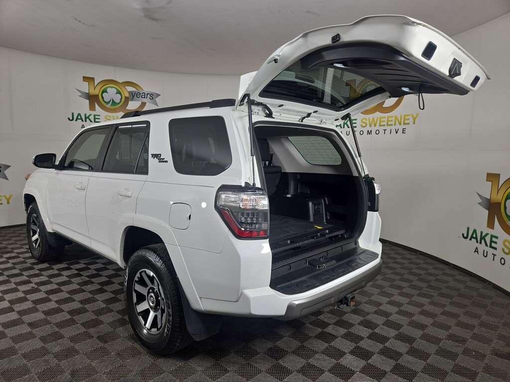 Jake Sweeney Is Here to Help! If you are in need of a new or used vehicle, we are offering you the ability to shop online and have your vehicle delivered to your home. White 2022 Toyota 4Runner TRD Off-Road Premium 4WD 5-Speed with ECT 4.0L V6 DOHC 24V LIFETIME POWERTRAIN WARRANTY, SUNROOF, SLIDING REAR CARGO DECK, 4WD, Black/Graphite Artificial Leather.